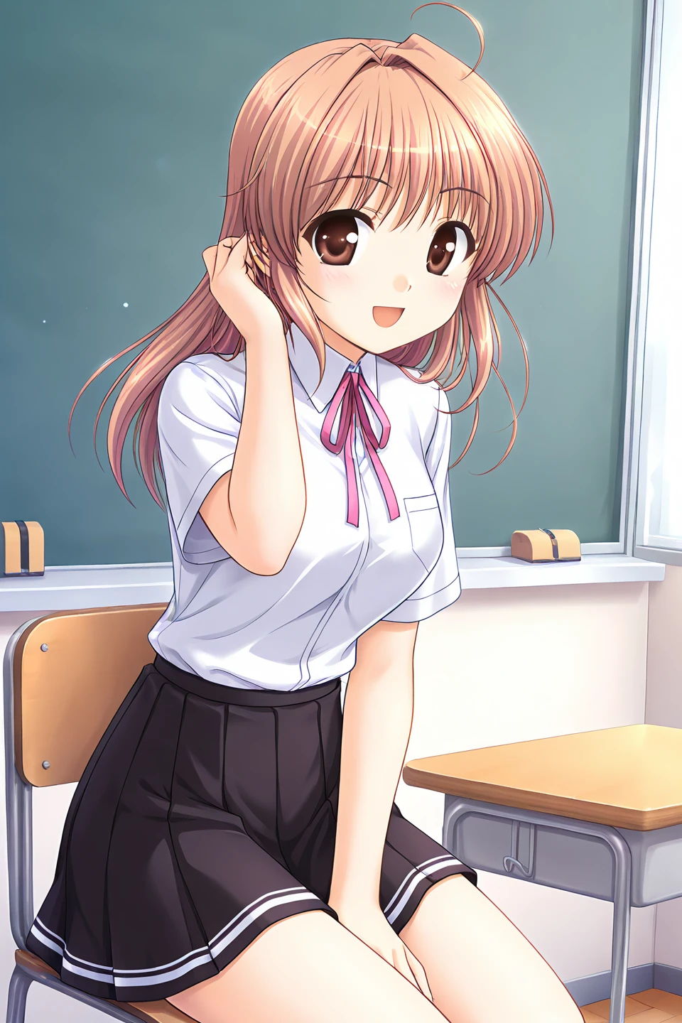 yuuki haruna,brown eyes,brown hair,ahoge,long hair,hair intakes,