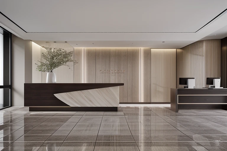 interior design,Front office,front desk,office lobby,high-definition,modern style,high-end interior design,