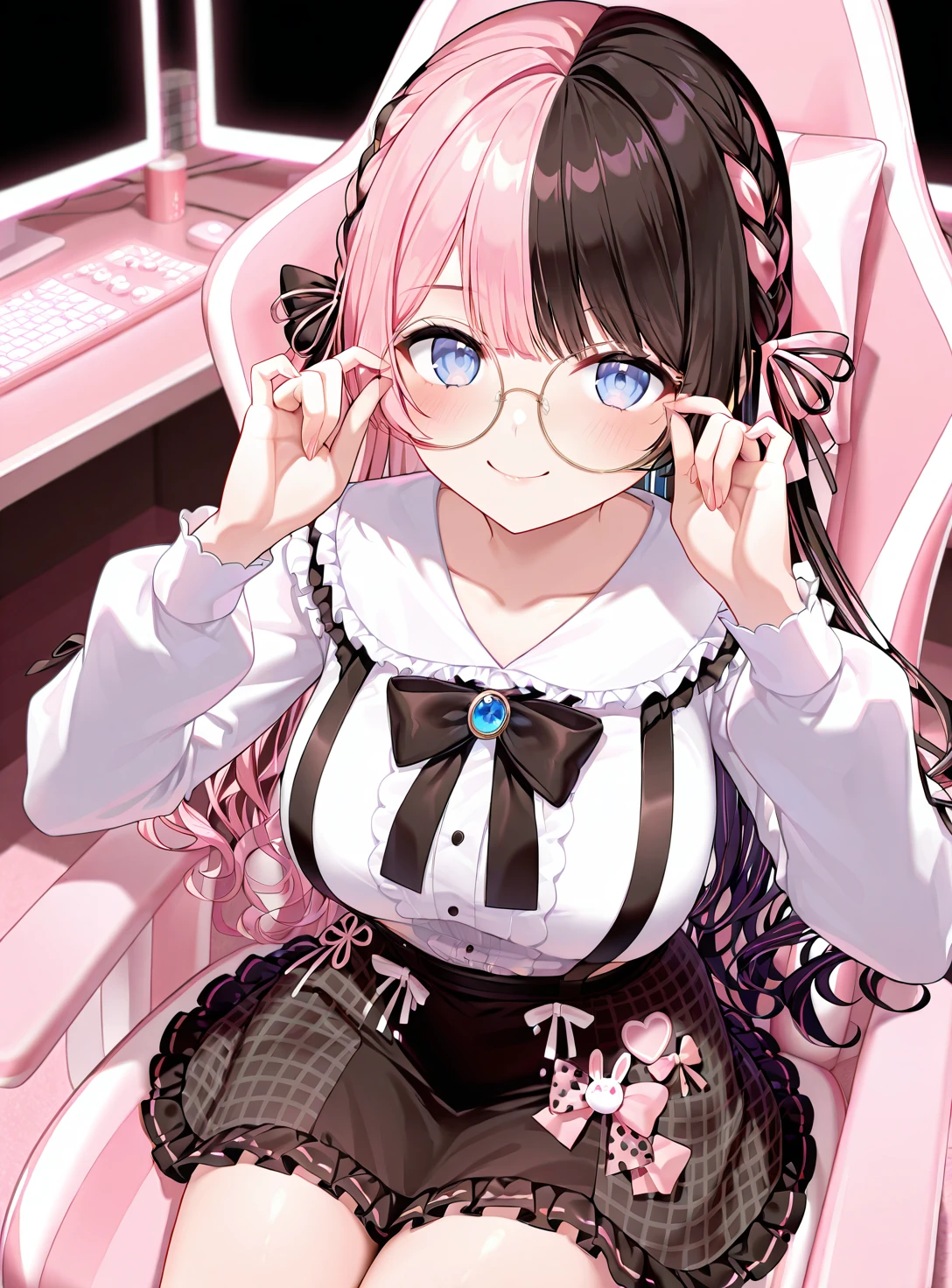 "HinanoGothicpunk, long hair, two-tone hair, hair bow,"
