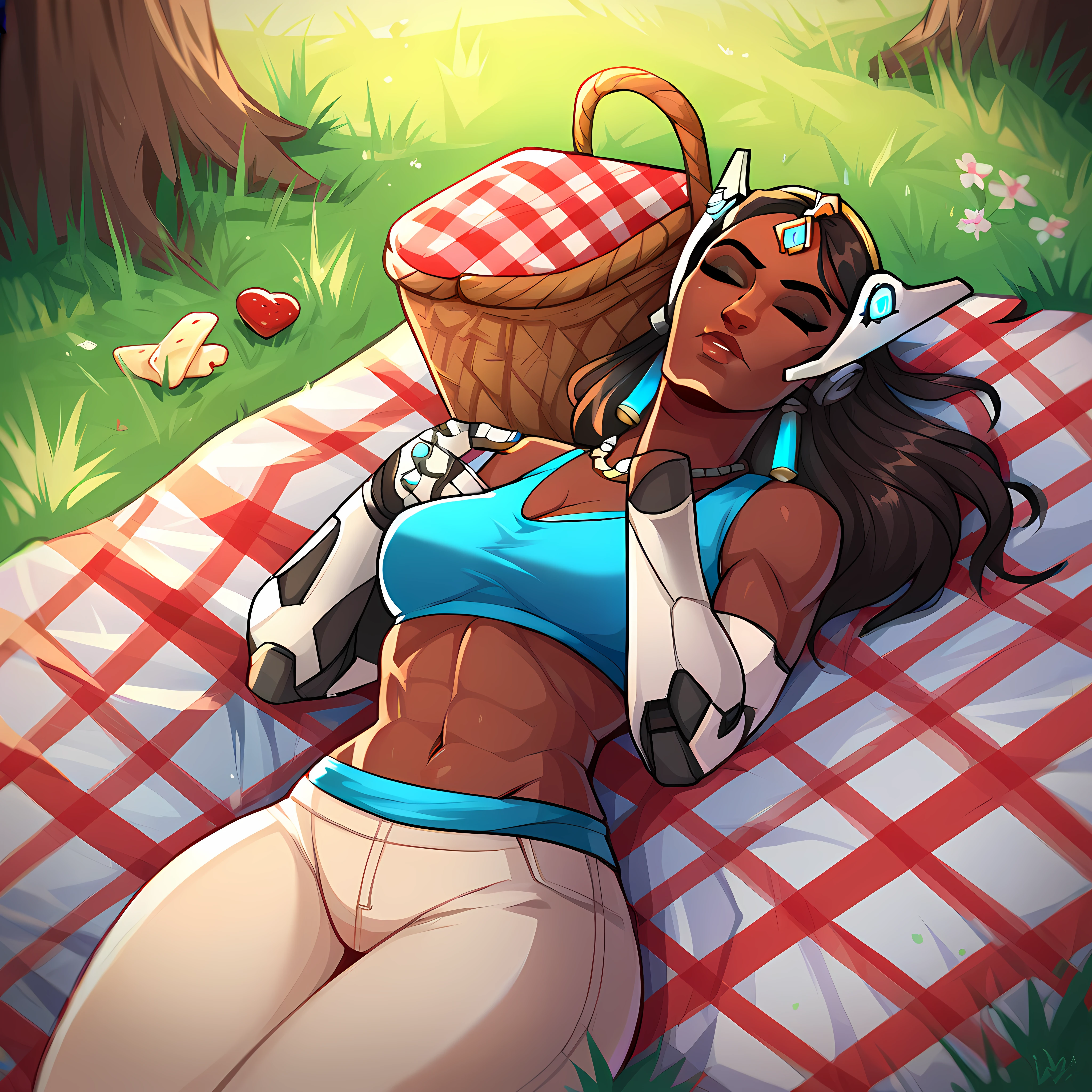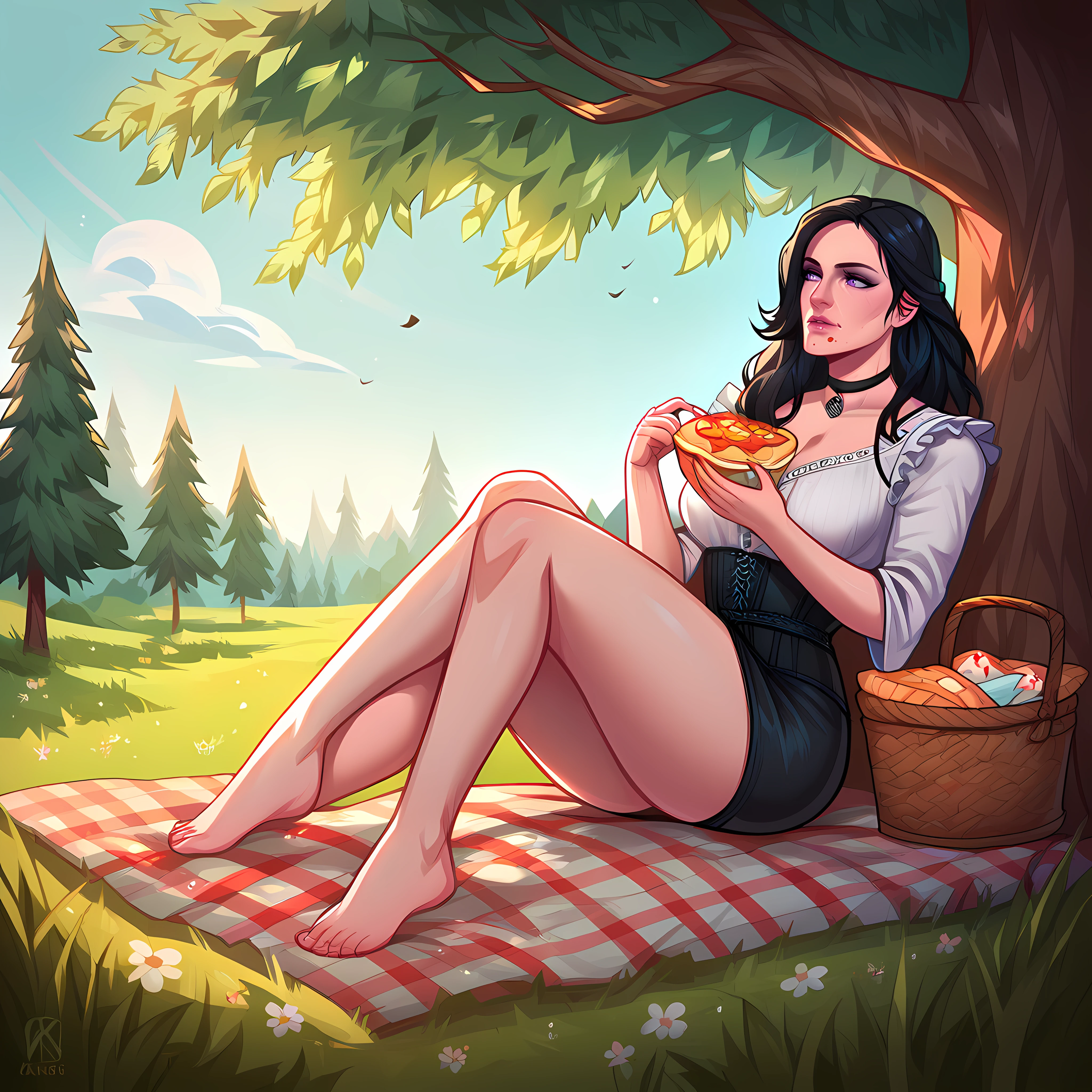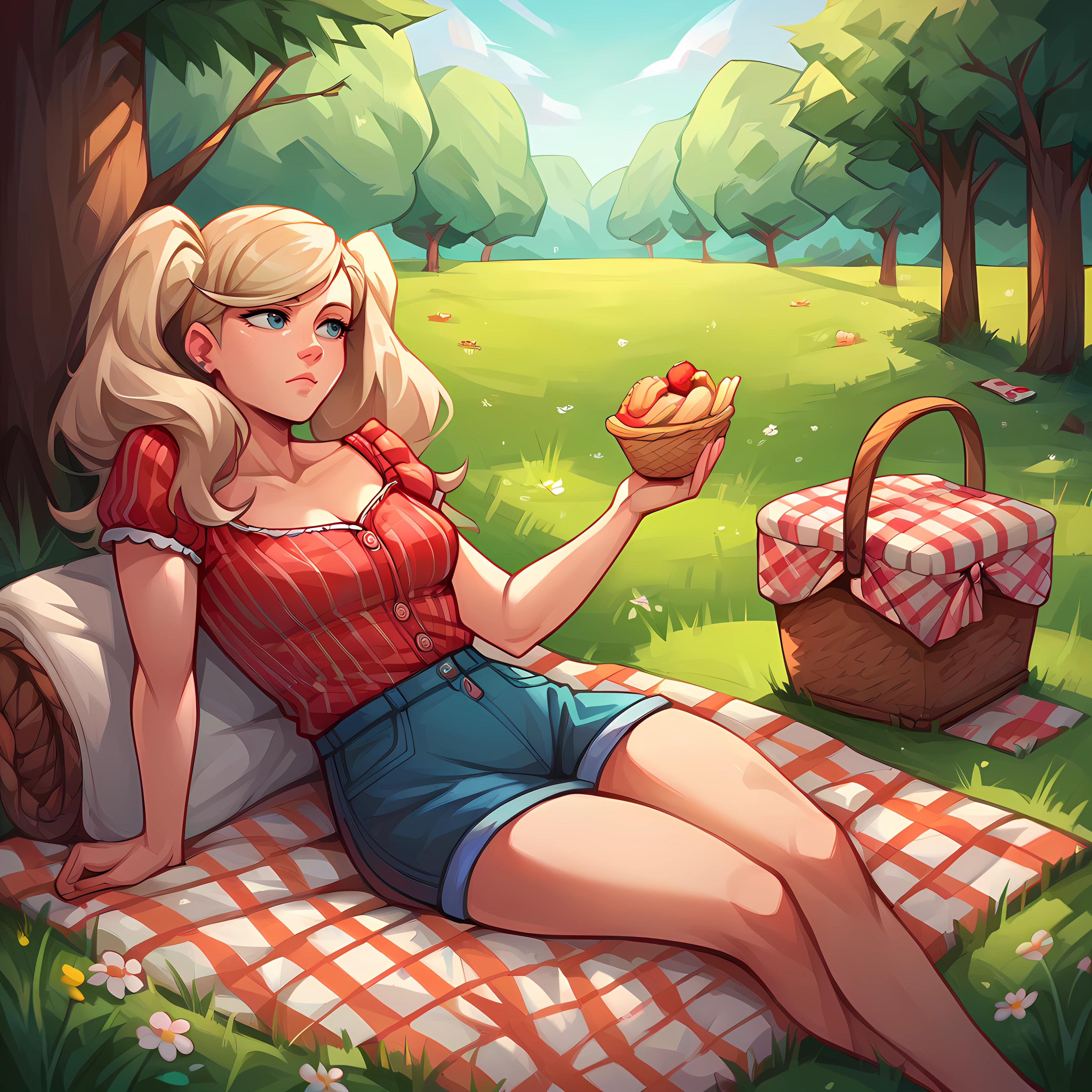 outdoors, food, grass, picnic basket, tree, day