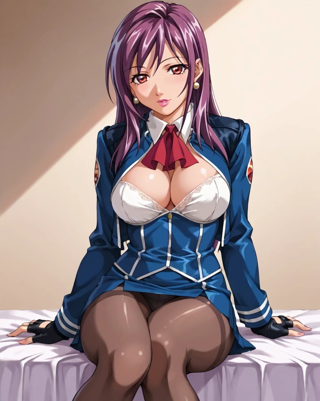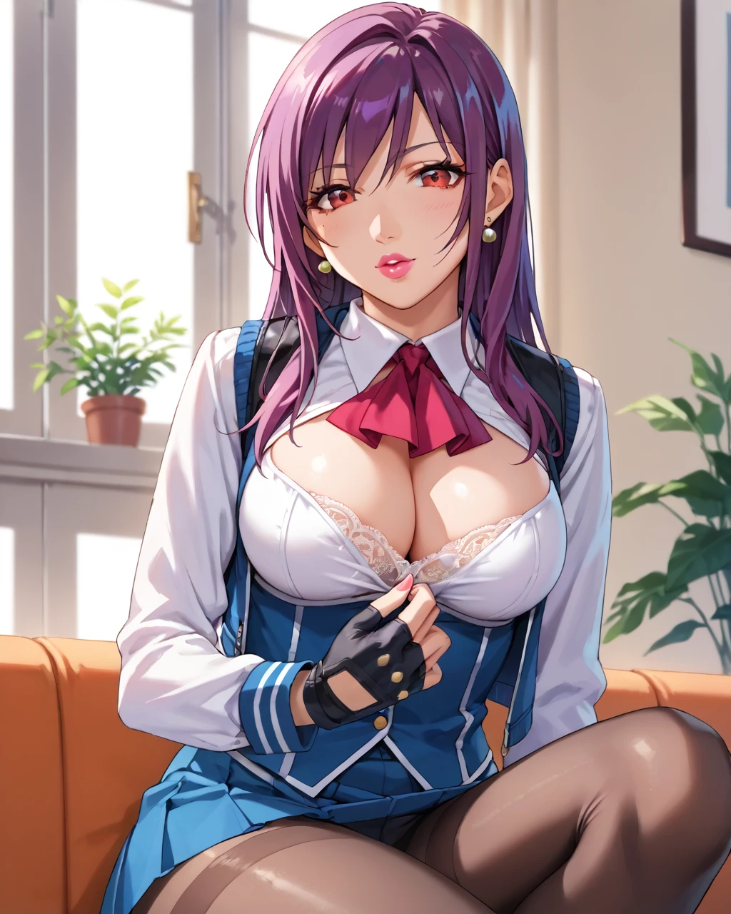 Aki Ichikawa, ichikawa, purple hair, long hair, red eyes, large breasts, 1girl, solo