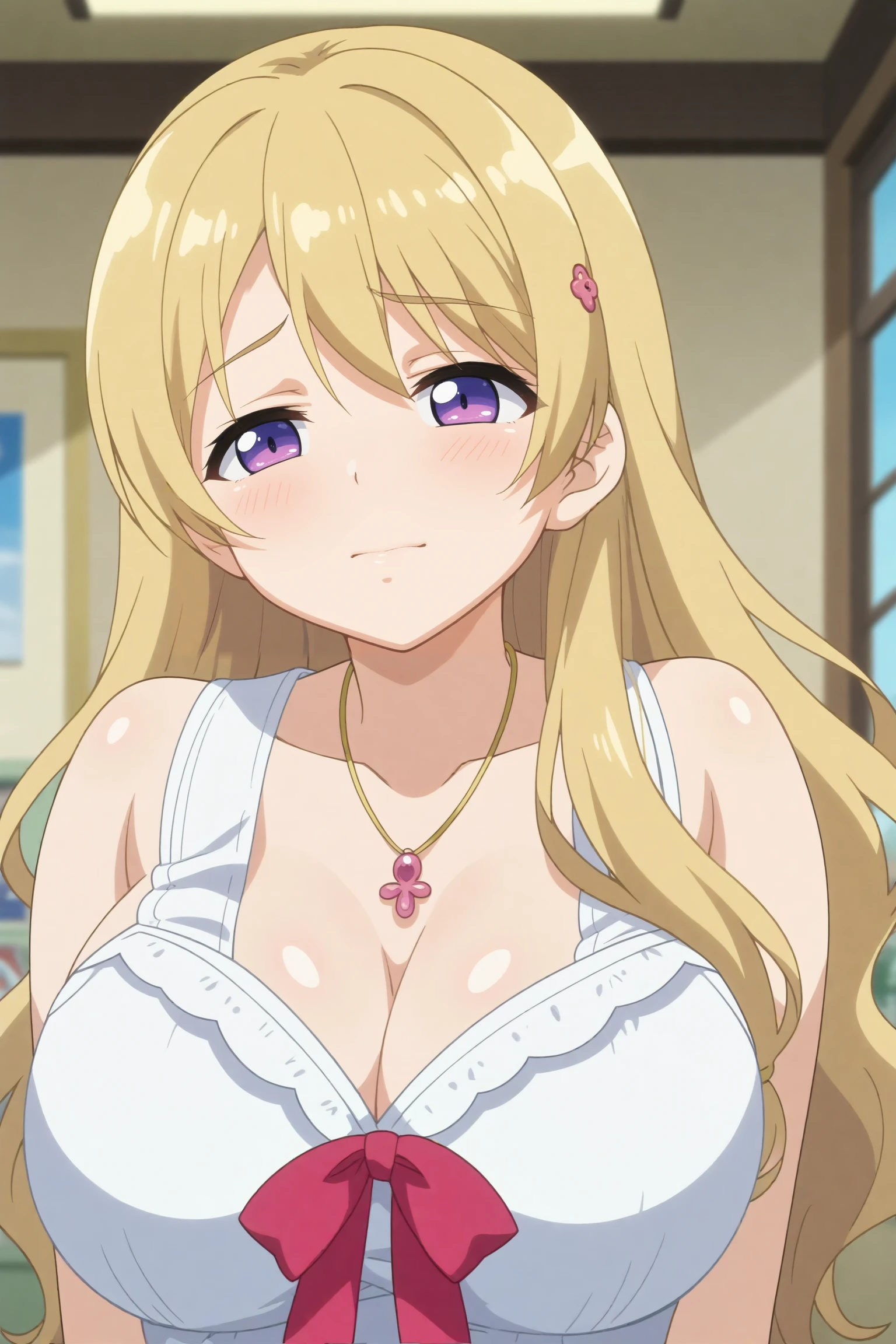 momoka fujiwara,long hair,blonde hair,breasts,large breasts,hair ornament,jewelry