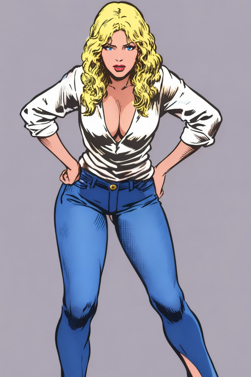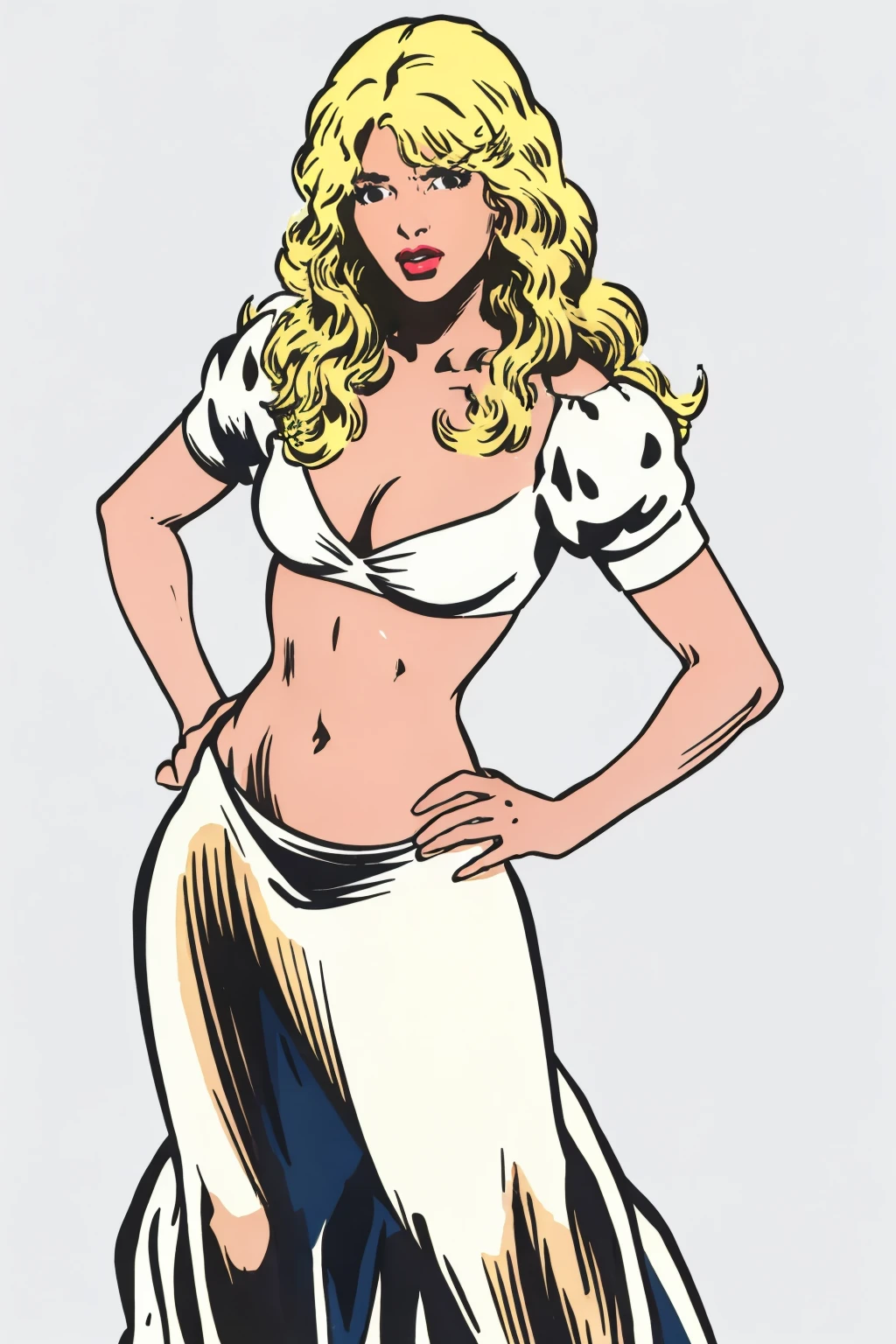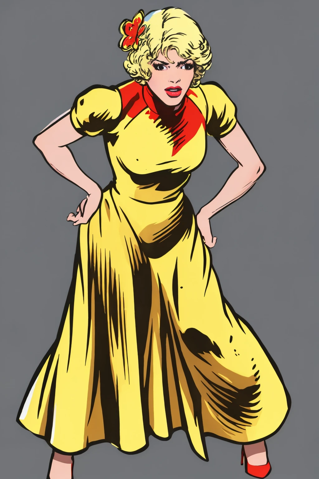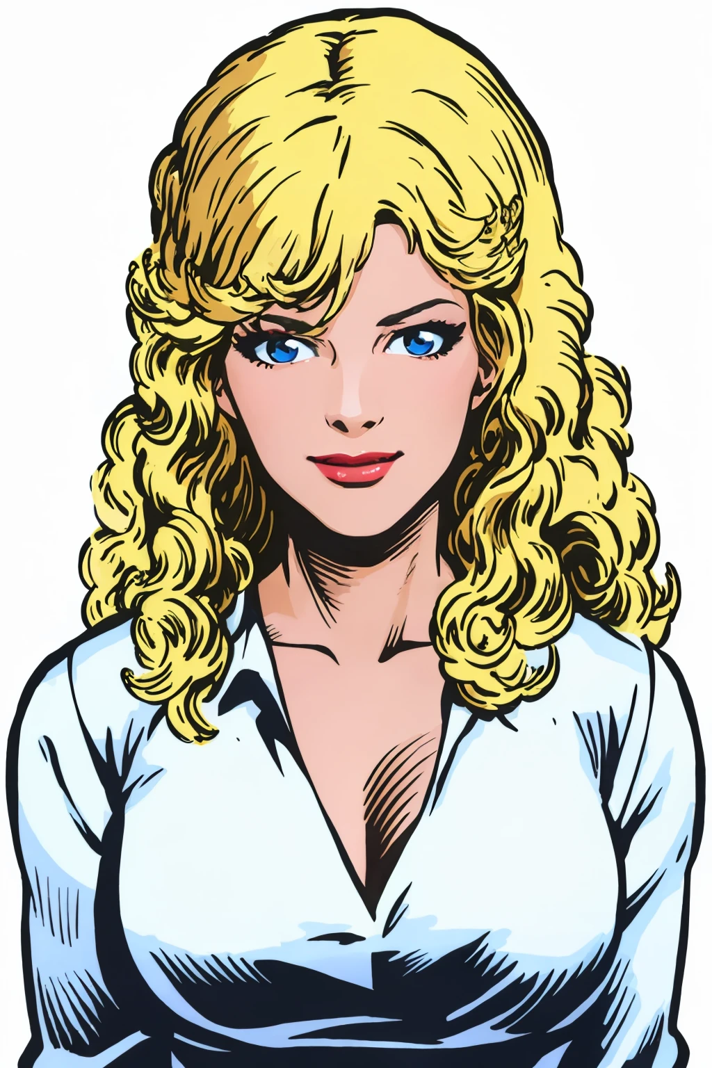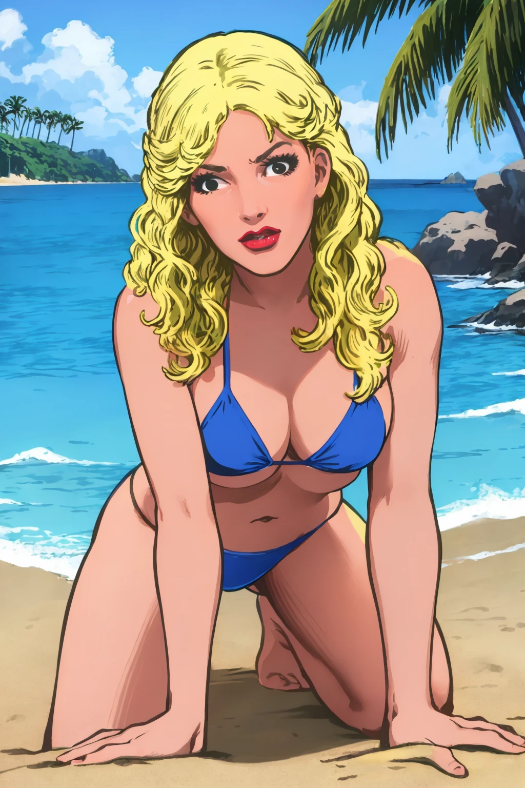 Basic prompts : 1girl, williescott, blonde hair, long hair, black eyes, lipstick