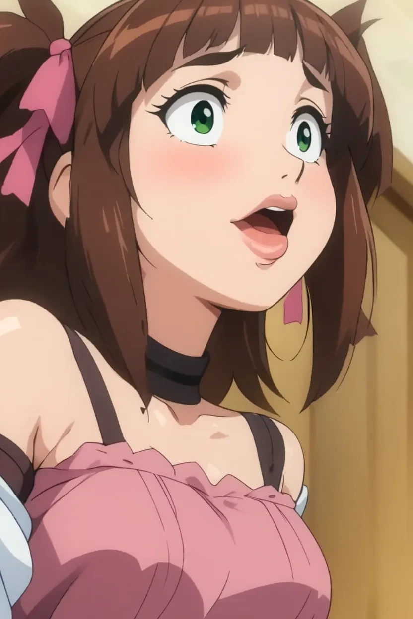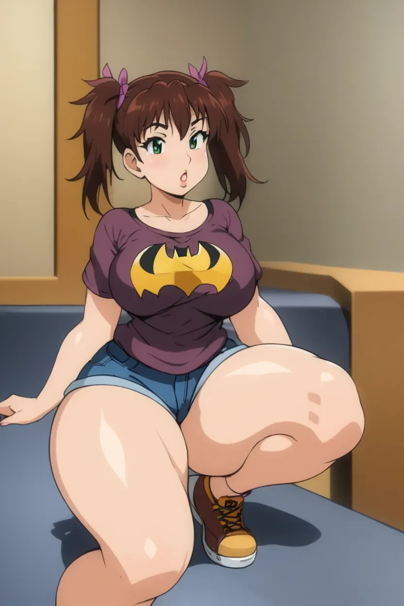 1girl, Amatsu (Stringendo+Accelerando Ultimatum Sera), twin tails, hair ribbon, brown_hair, green eyes, glossy lips, thick full lips, large breasts, HD, 4k, High-Resolution, superb quality, no flaws, digitally remastered, clean animation, uncensored