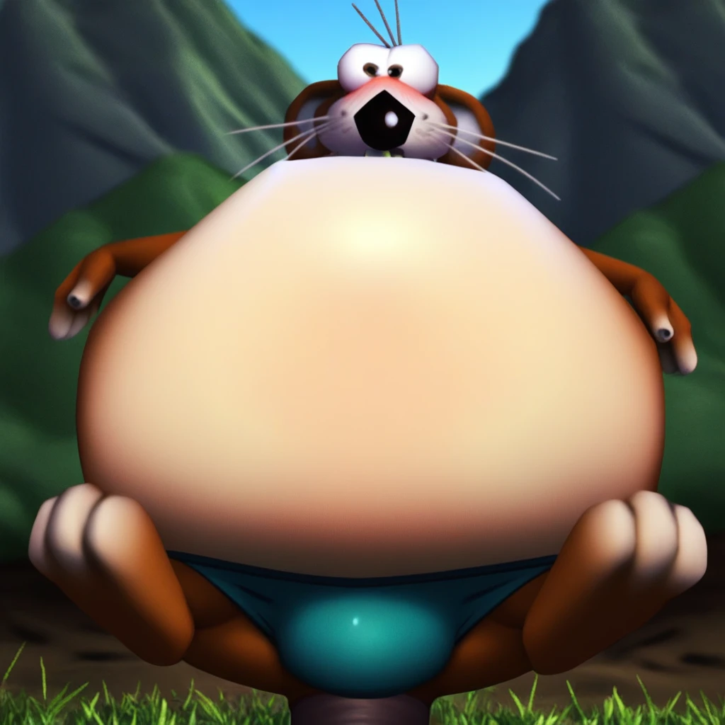 Tags: Marvin_the_mouse, mouse, brown fur, light colored belly, big ears, big snout, big nose, big eyes, whiskers, hair tuft, buck teeth, short legs, big feet, tail, long tail, big belly