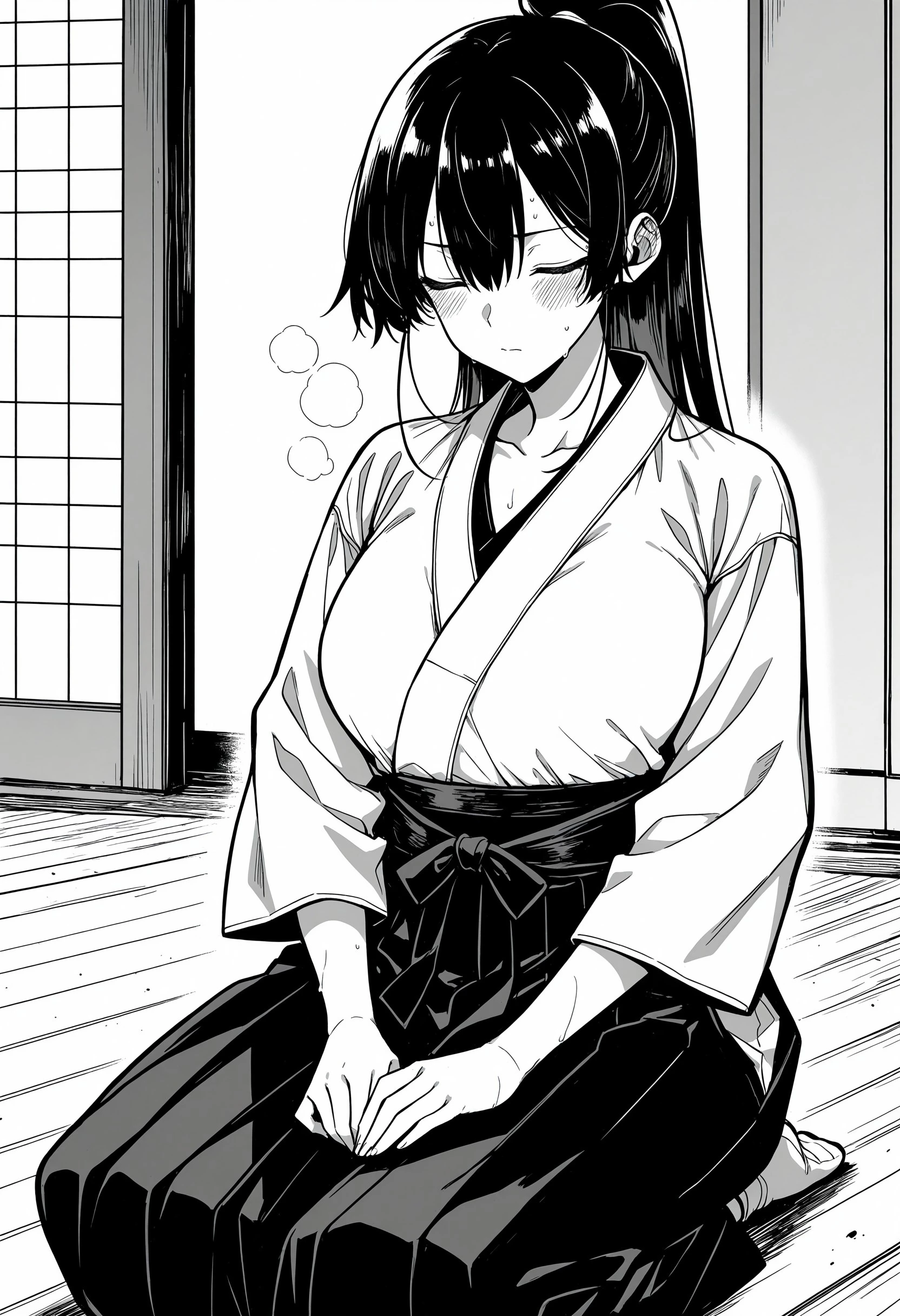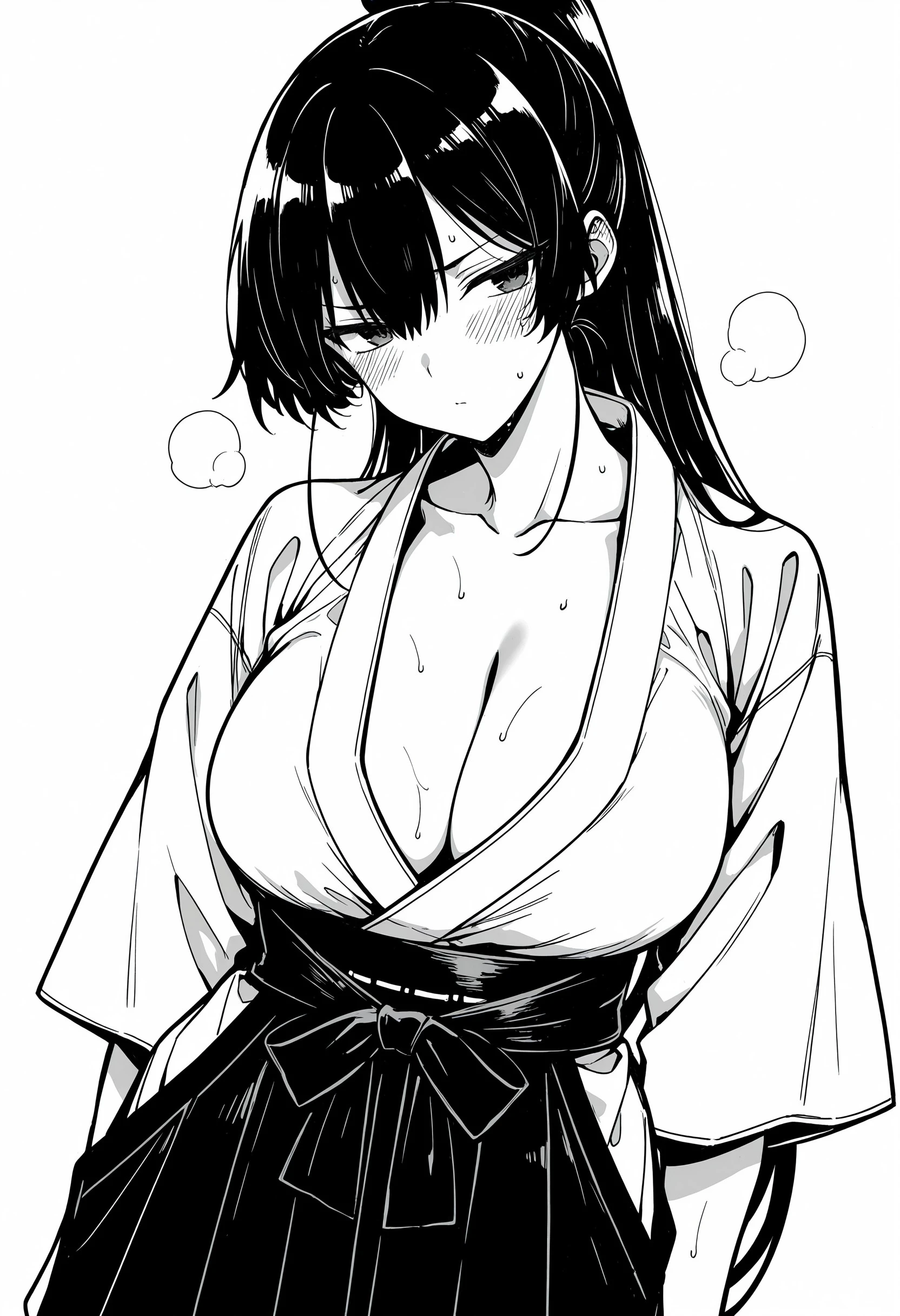 sh1r4m1n3_k0u0, high ponytail, black hair, double-parted bangs, sidelocks