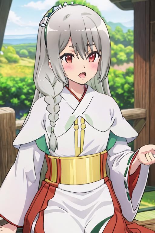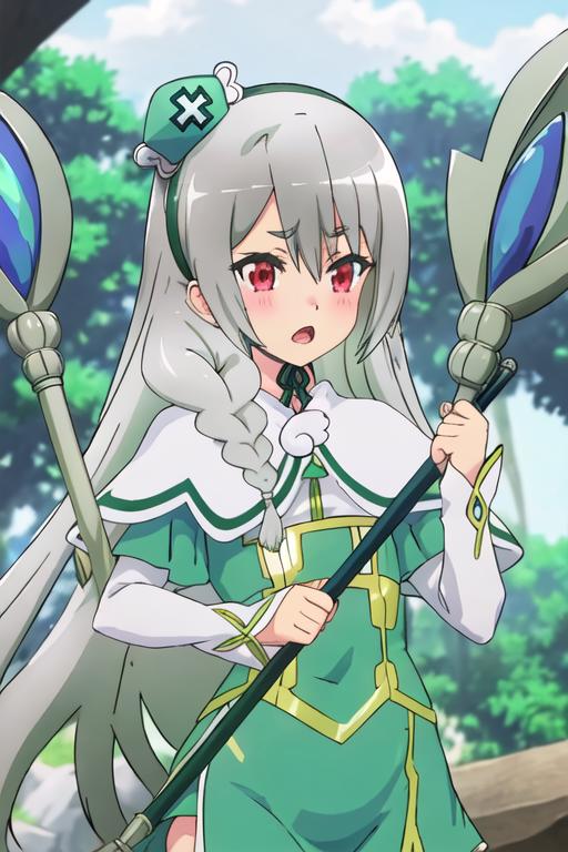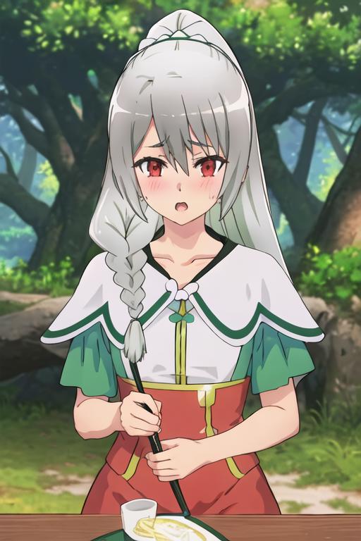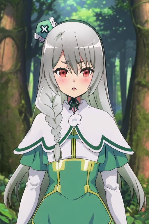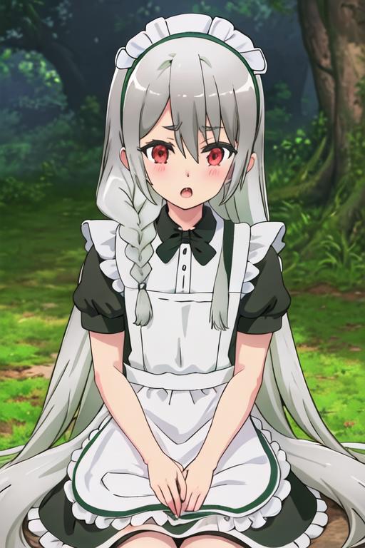 The trigger word is maidena_ange_futokunoguild, and the recommended tags are best quality, masterpiece, highres, solo, {maidena_ange_futokunoguild:1.15}, long_hair, grey_hair, red_eyes, blush, braid, open_mouth, hair_between_eyes.