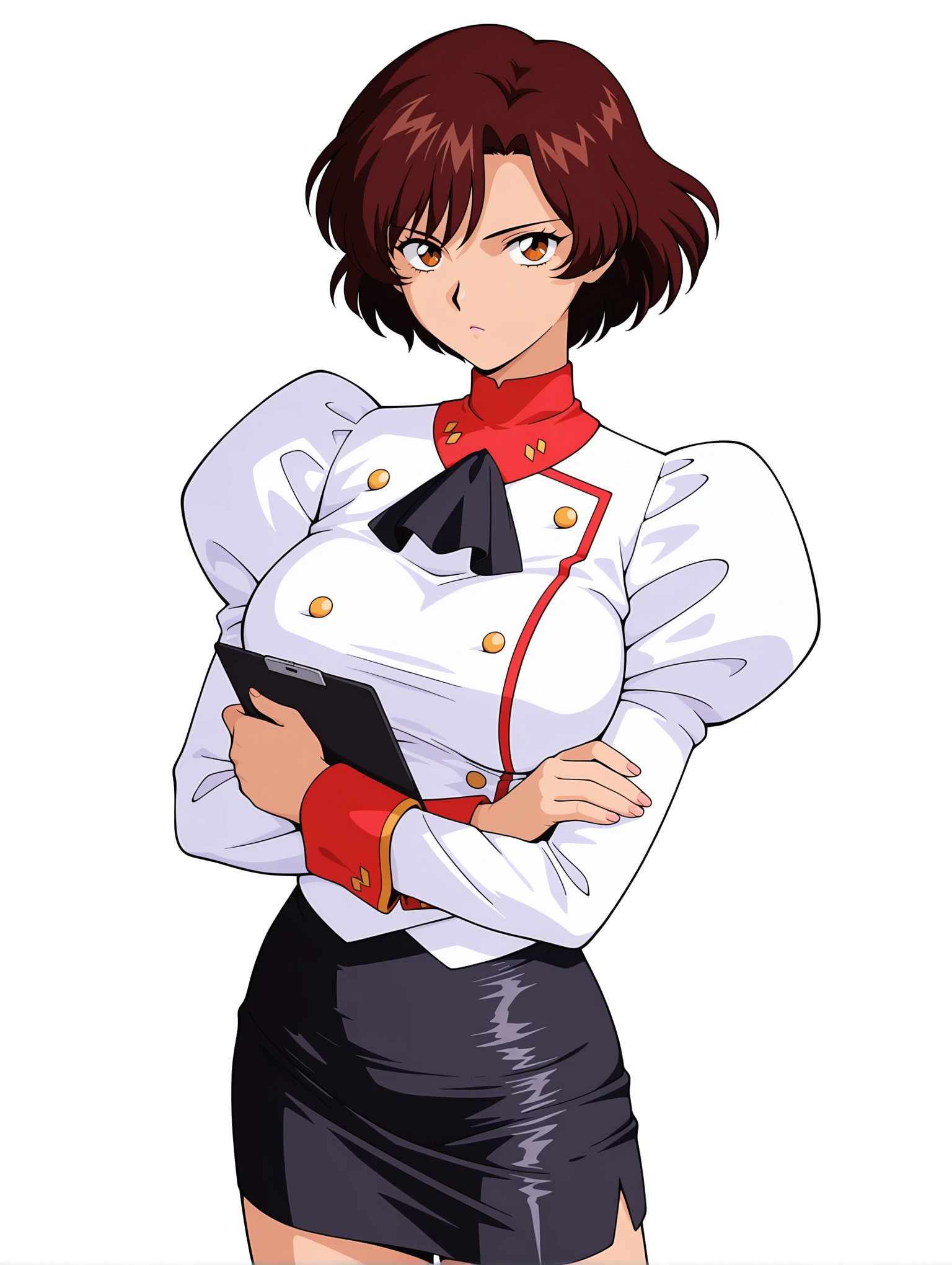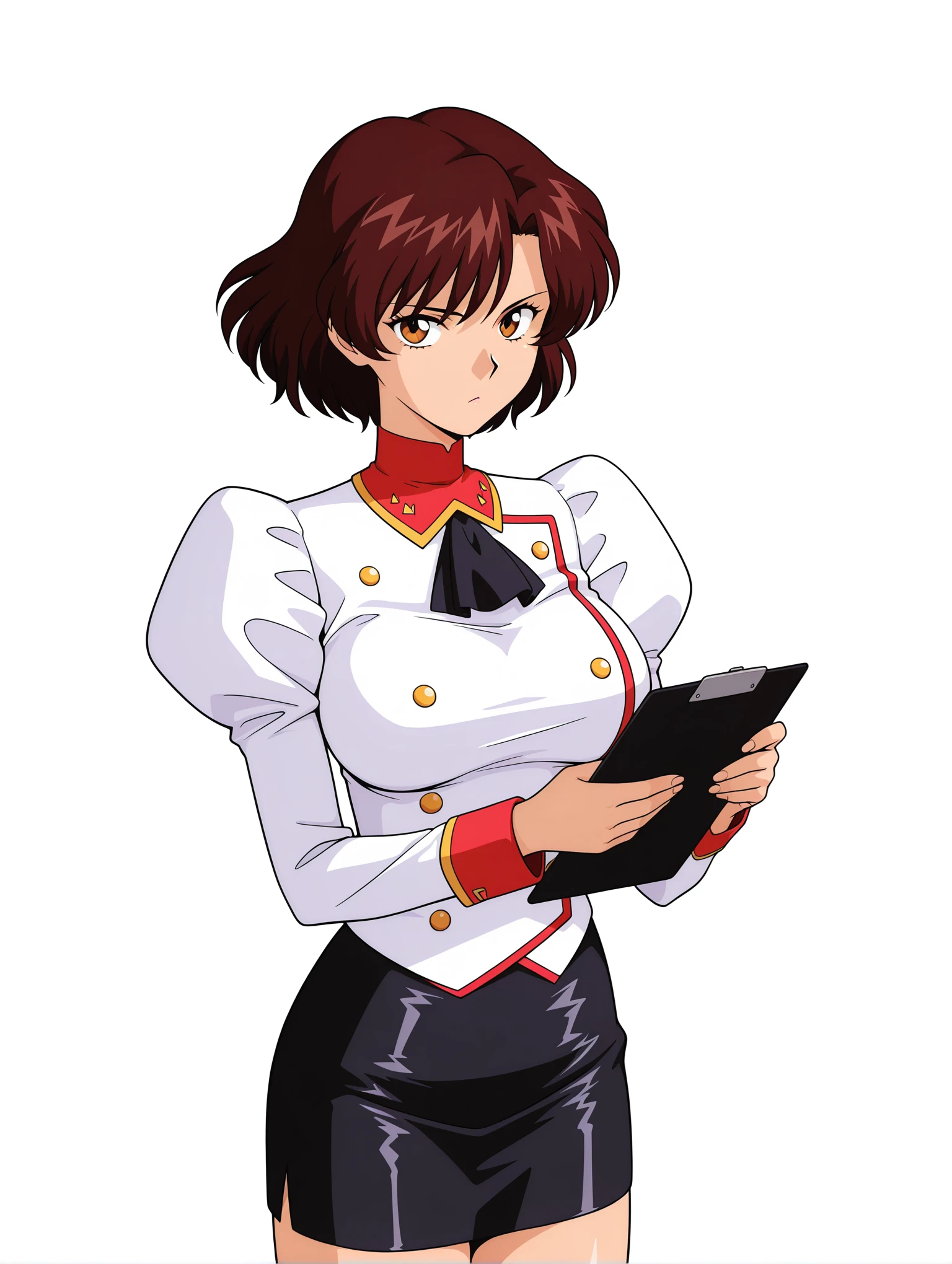 衣装ワード ・d_clothes,black ascot,white jacket,double-breasted,black pencil skirt,white high heels,