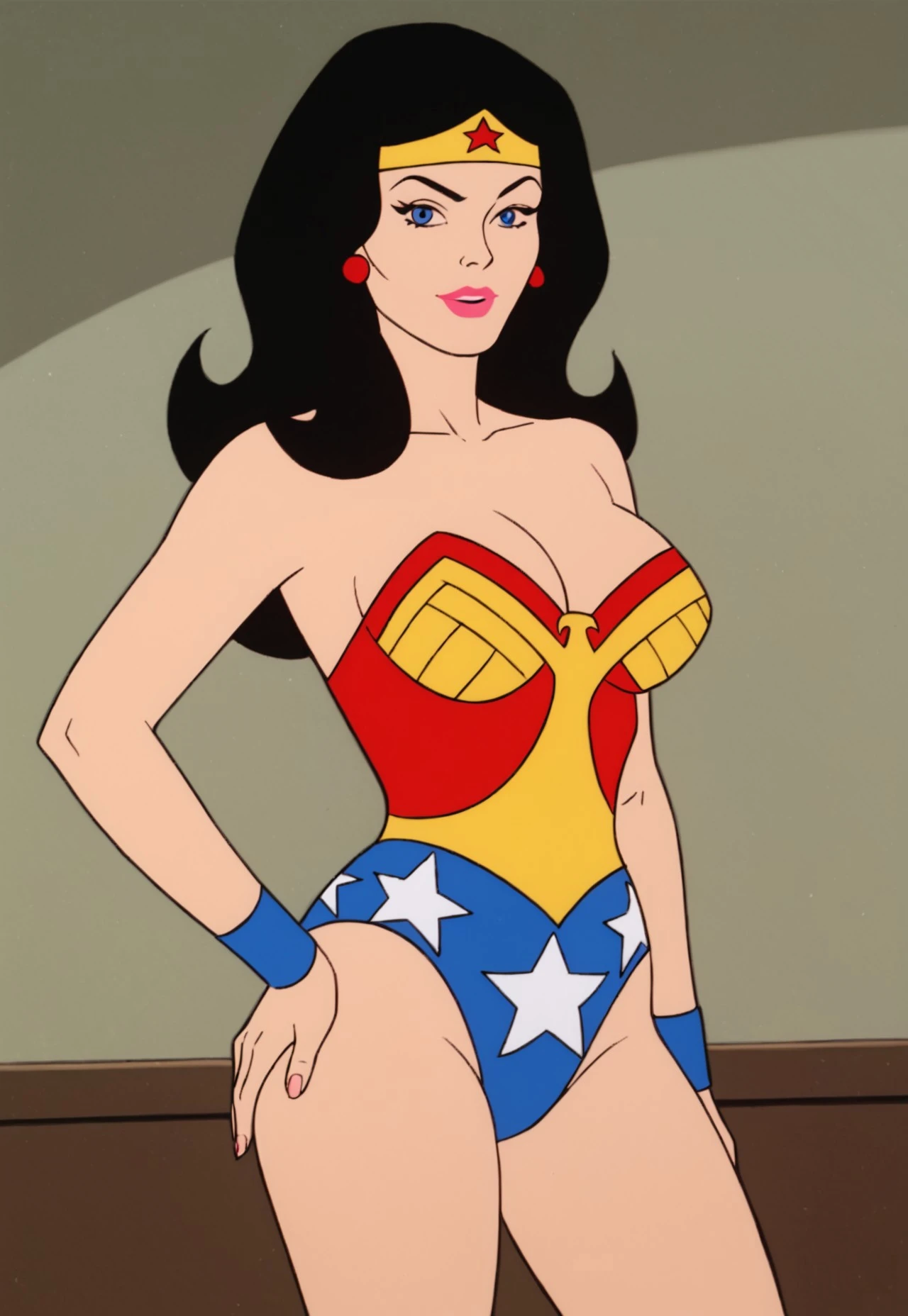 Made to pair with other LoRAs. Good for SFW and NSFW. Gathered together from the cosmic reaches of the universe, here in this great Hall of Justice are the most powerful forces for good ever assembled. The first female of DC Comics is back in all her glory. For a look very close to the Super Friends series use the terms: 1980s (style), retro artstyle in your prompt.