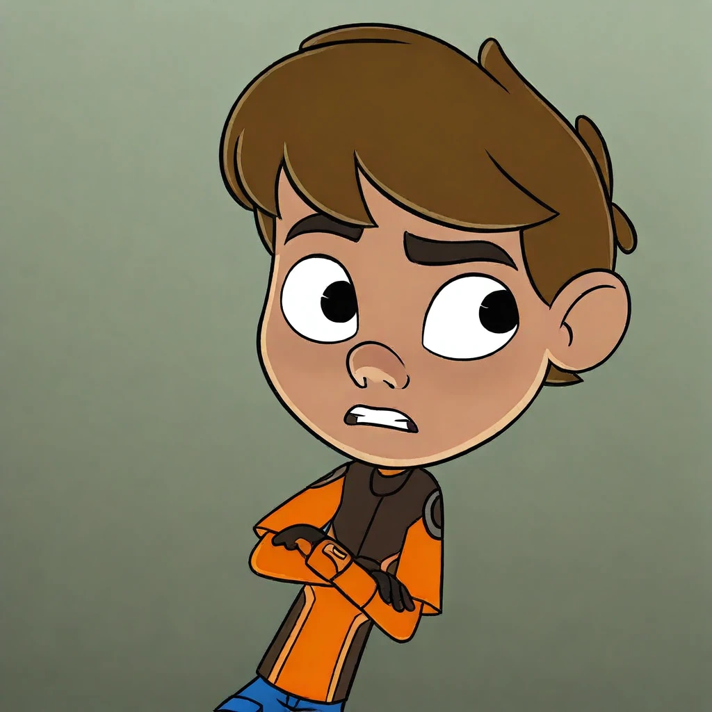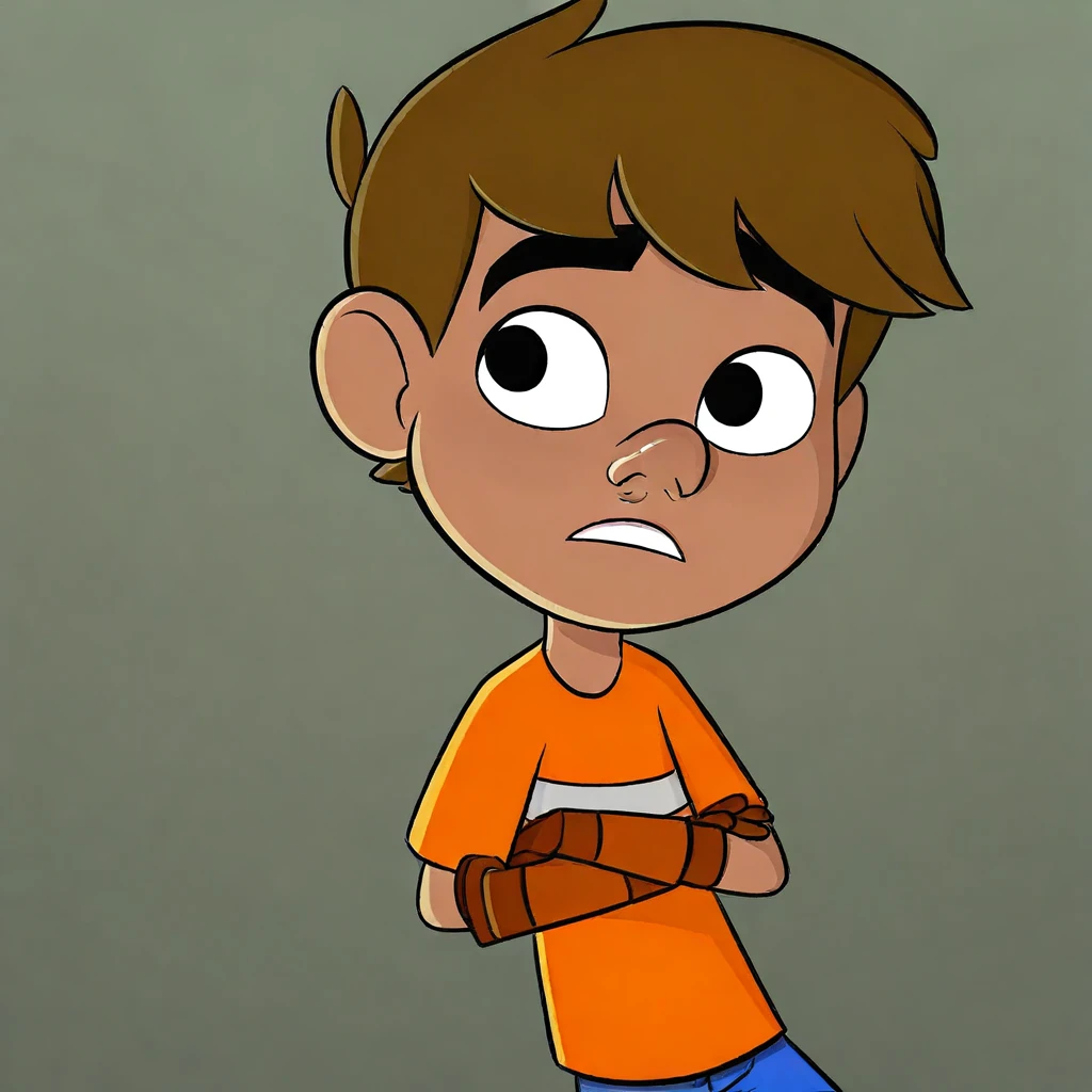 Ethan_Tuttle, black eyes, 1boy, short, brown hair, upturned nose, blue cargo shorts