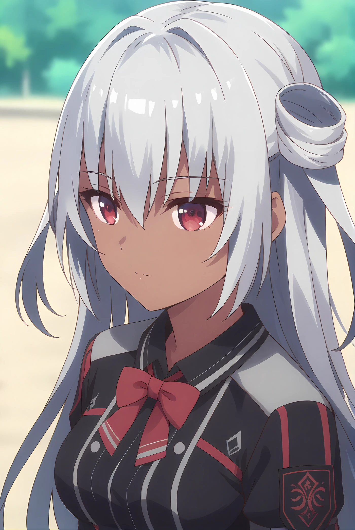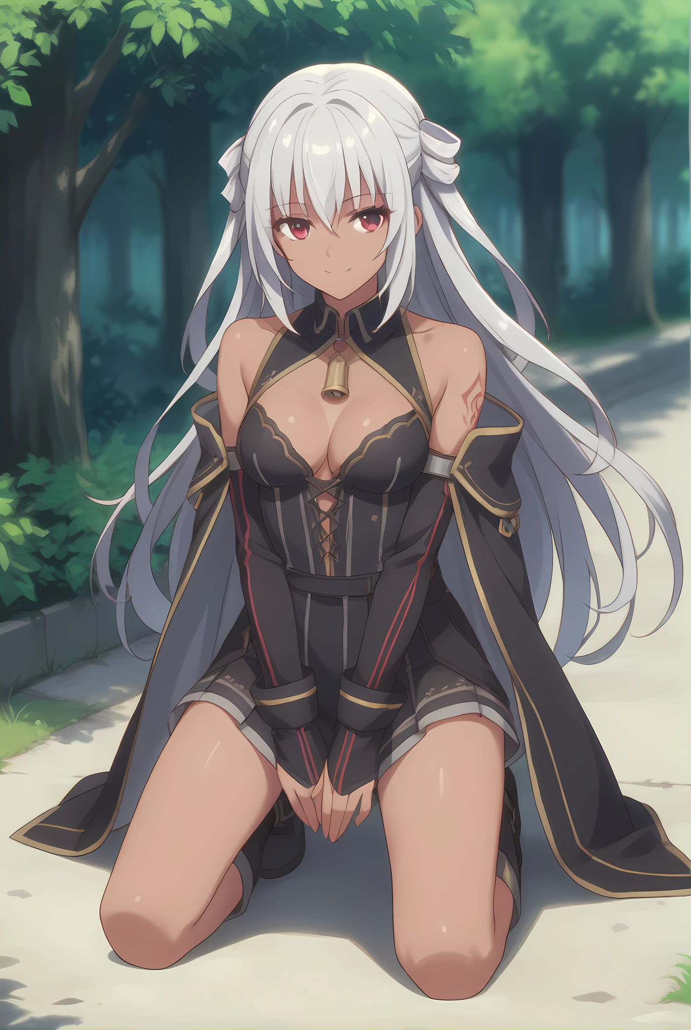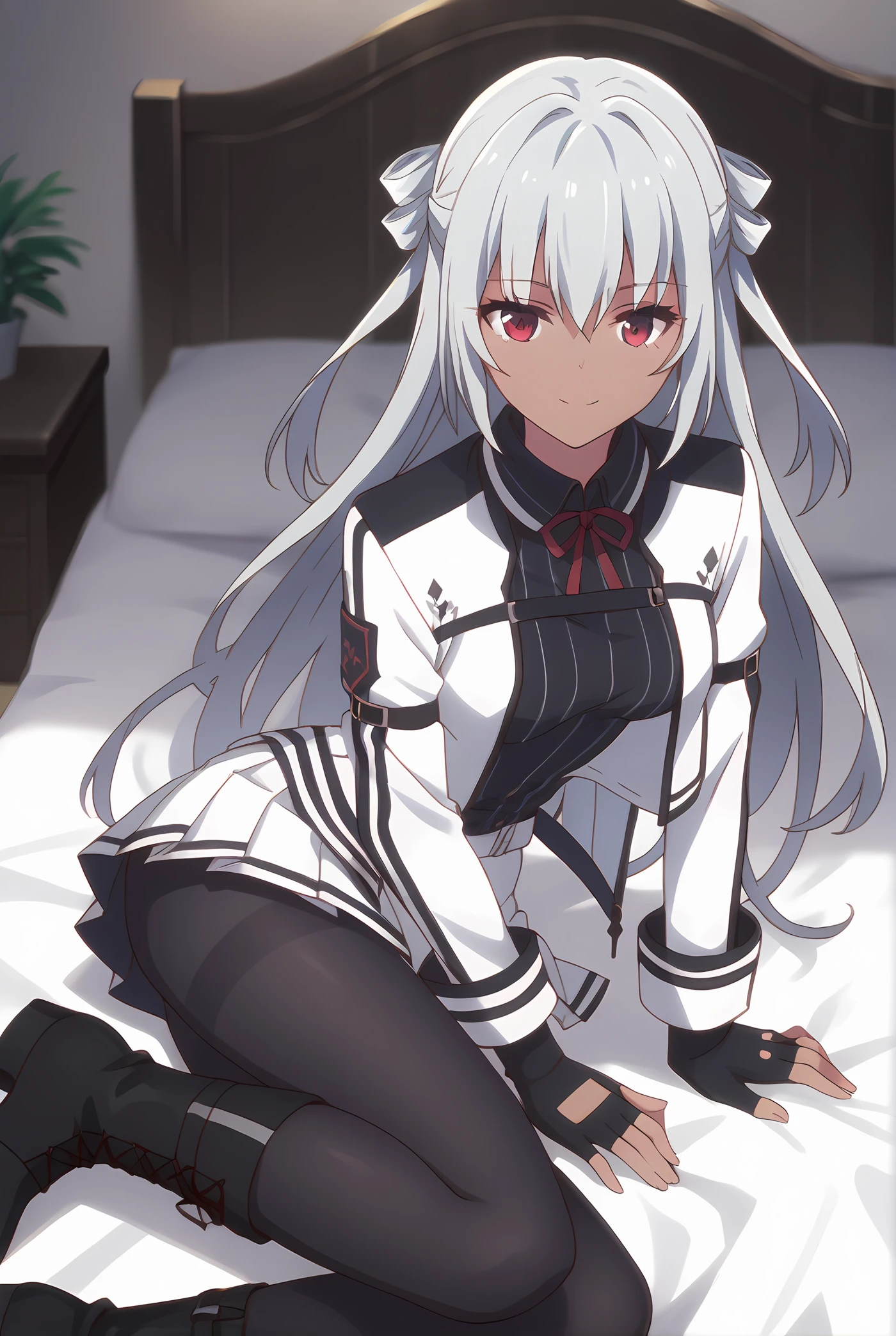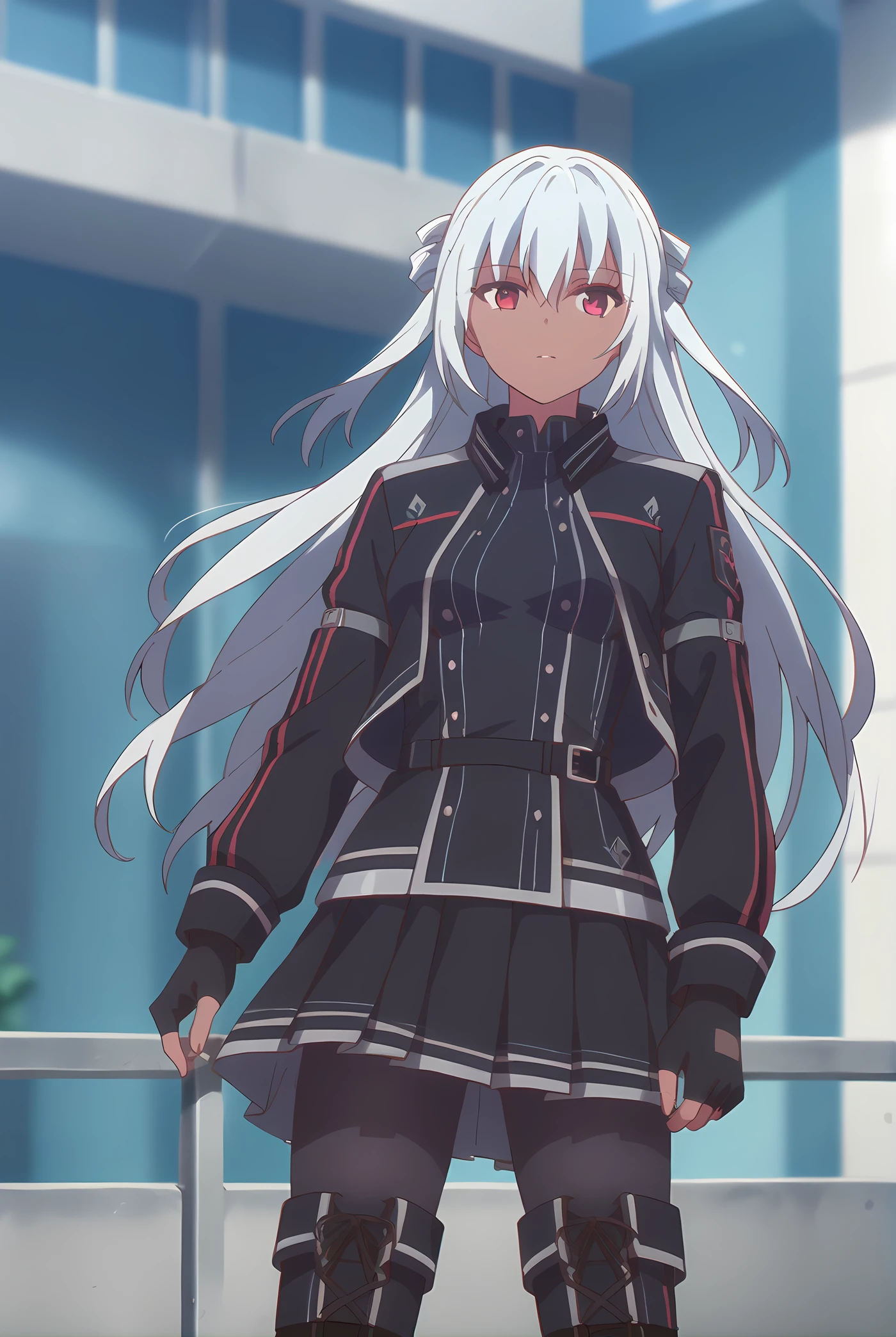white jacket white skirt black pantyhose fingerless gloves black boots
