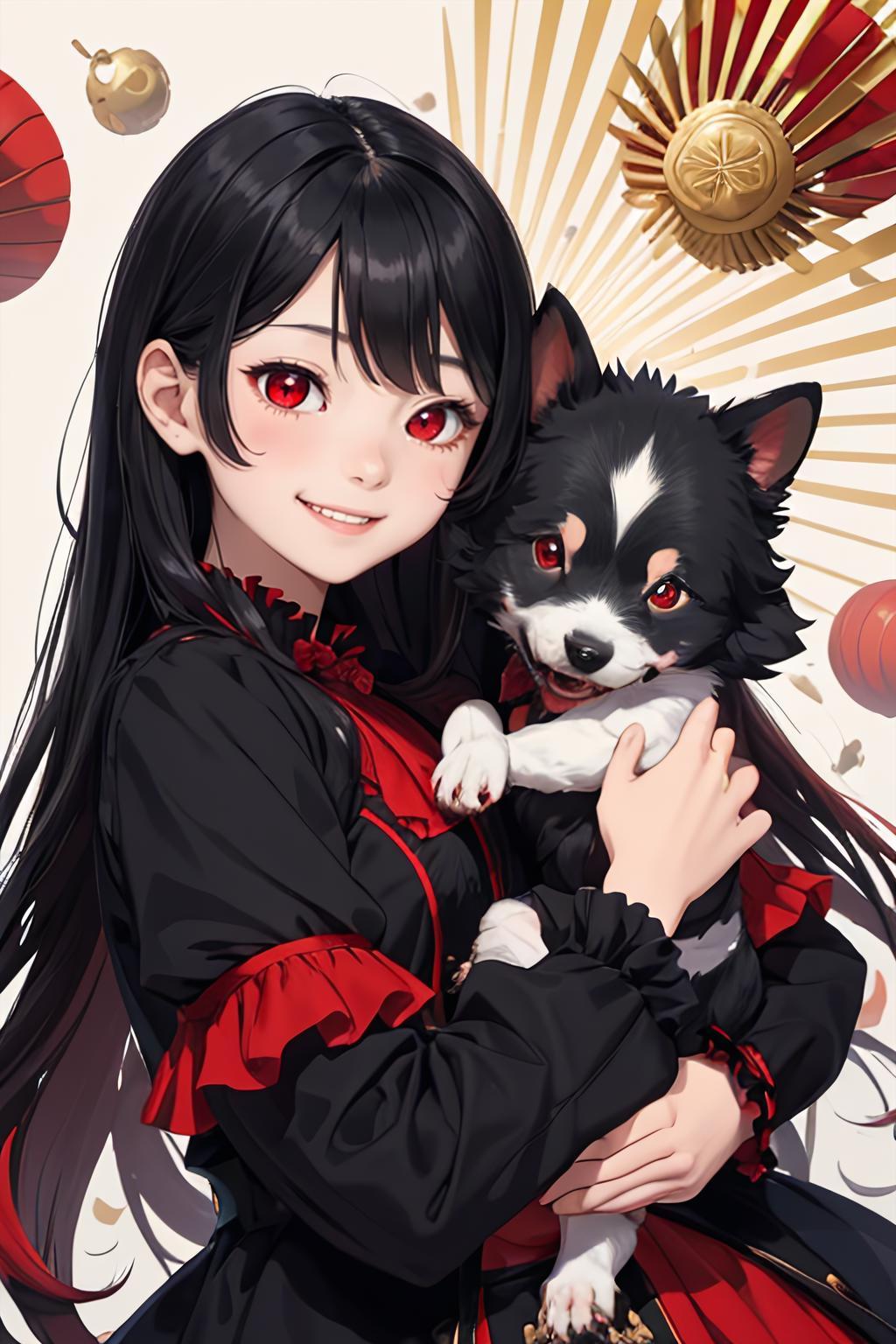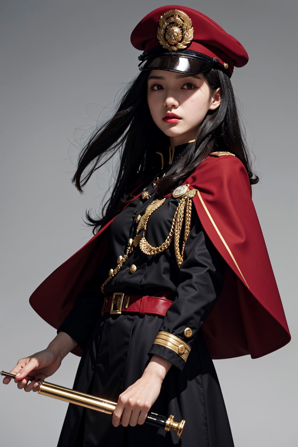 oda_smoll, hat,cape, red eyes, military uniform,black hair