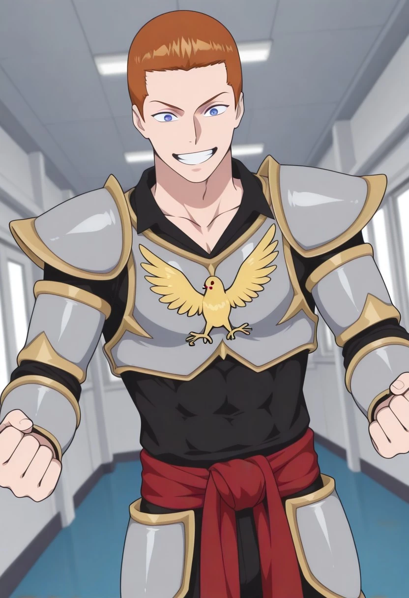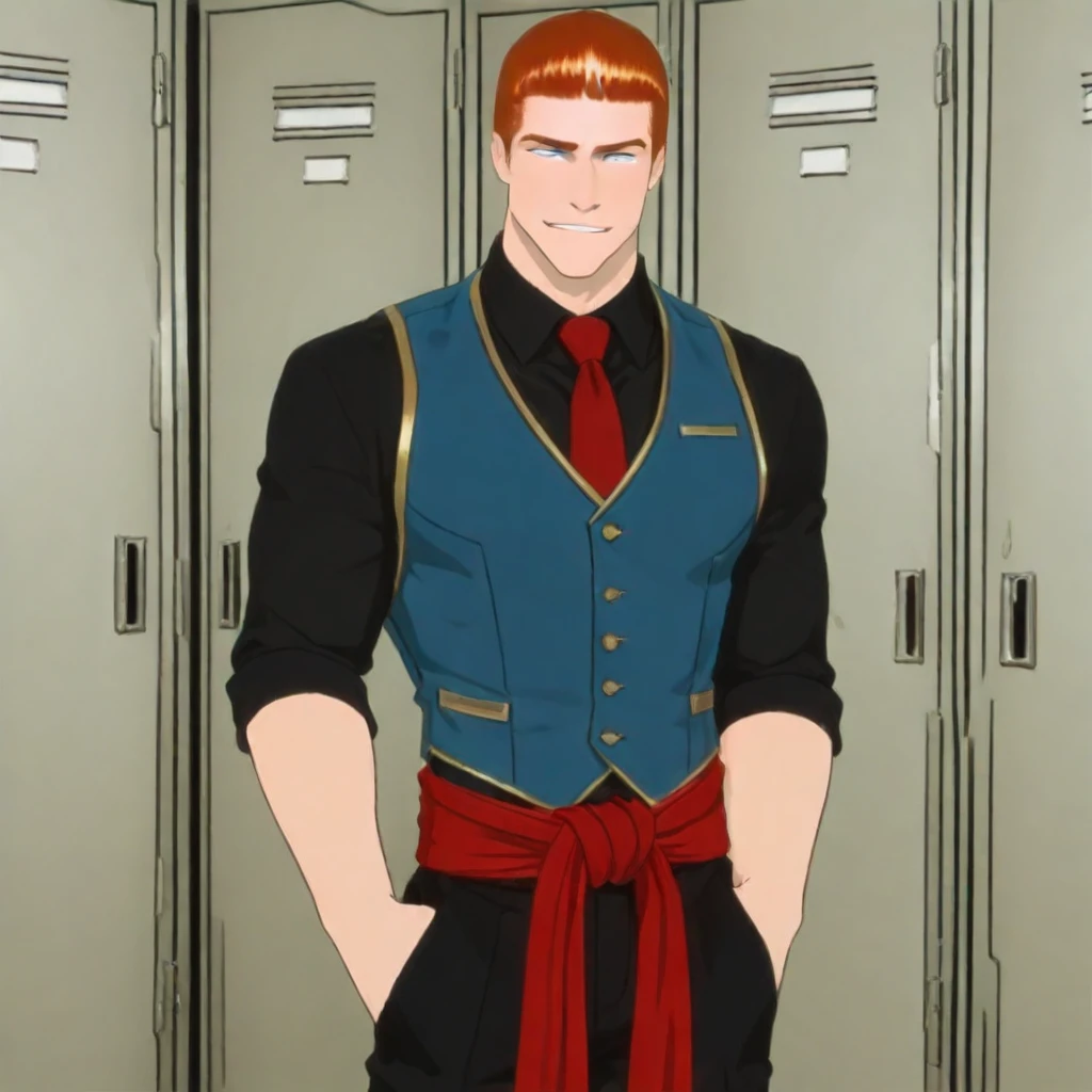 1boy, blue eyes, broad shoulders, muscular, biceps,