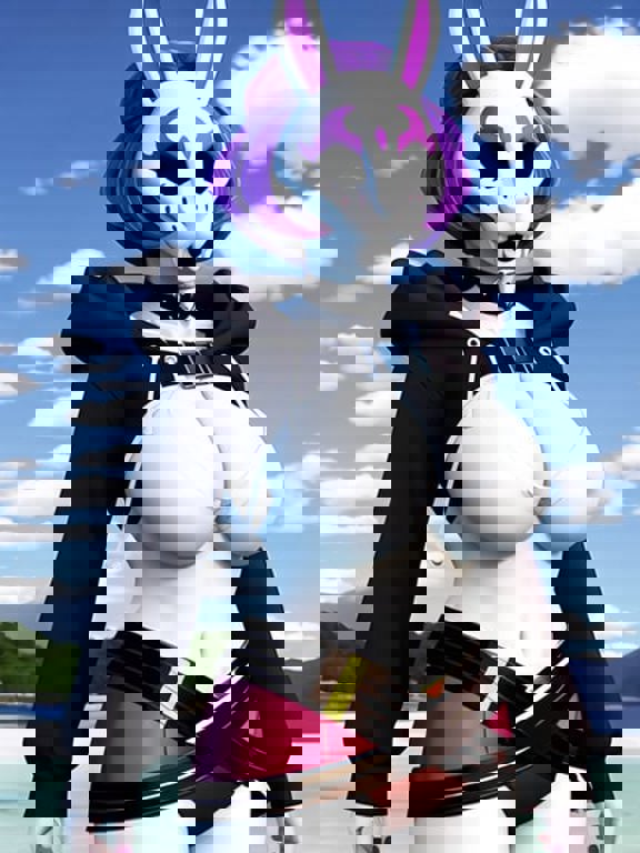 Use "mask" for her to don her mask and "face" otherwise. You may need to put "animal ears" or "rabbit ears" in the negative when the mask is off to avoid residual ears showing up.