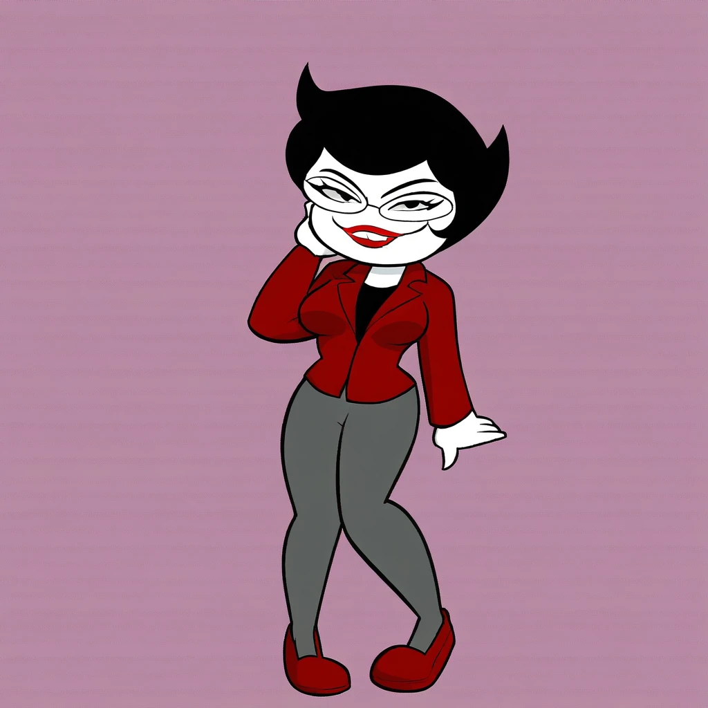 1girl, short hair, black hair, glasses, buckteeth,