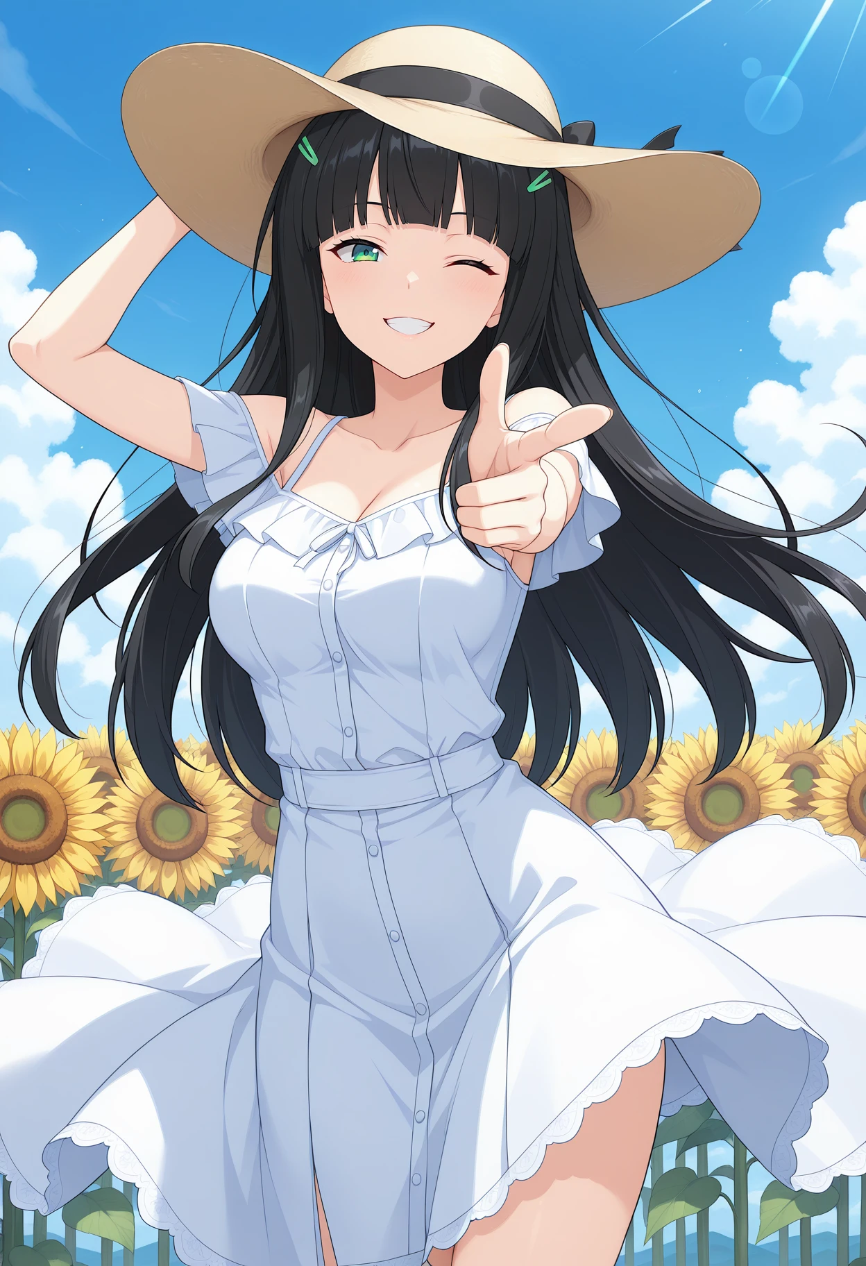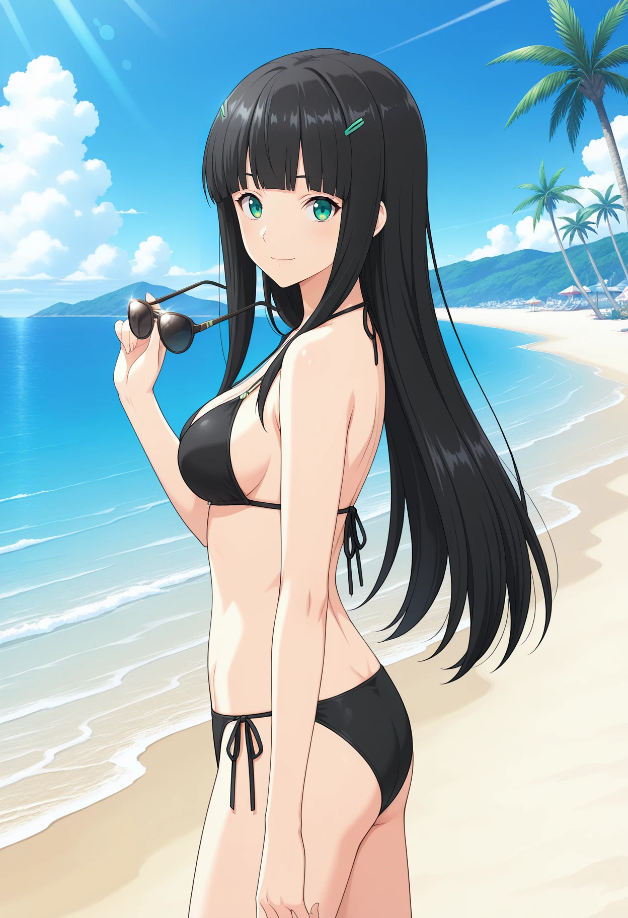 mm,long hair,black hair,bangs,hairclip,hair ornament,green eyes,game cg