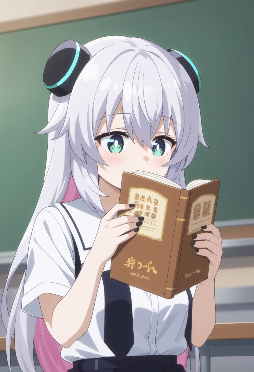 Trigger Words: alma (alma-chan wa kazoku ni naritai), long hair, white hair, pink hair, colored inner hair, two-tone hair, multicolored hair, green eyes, bright pupils, white pupils