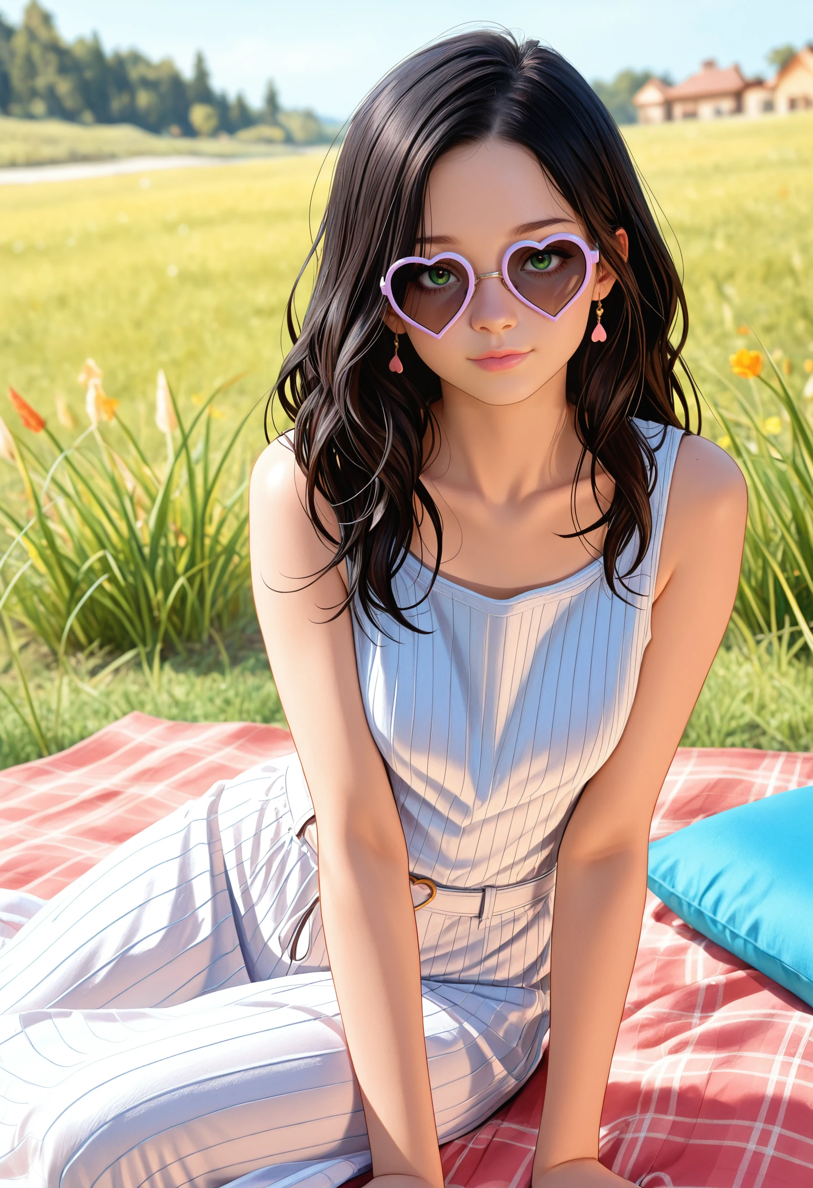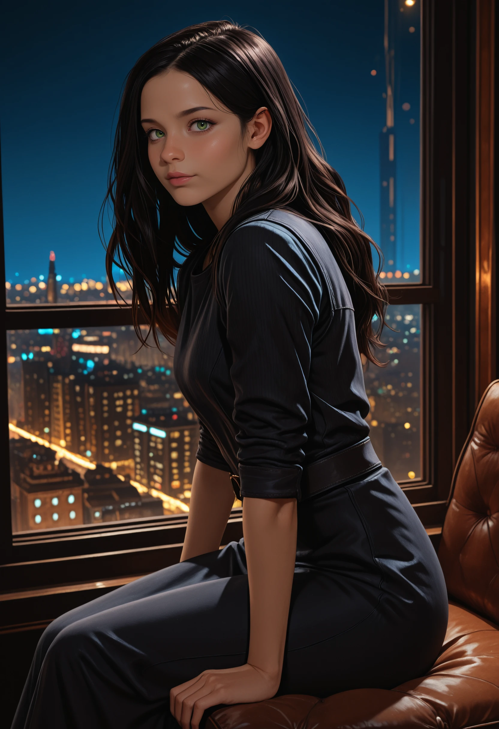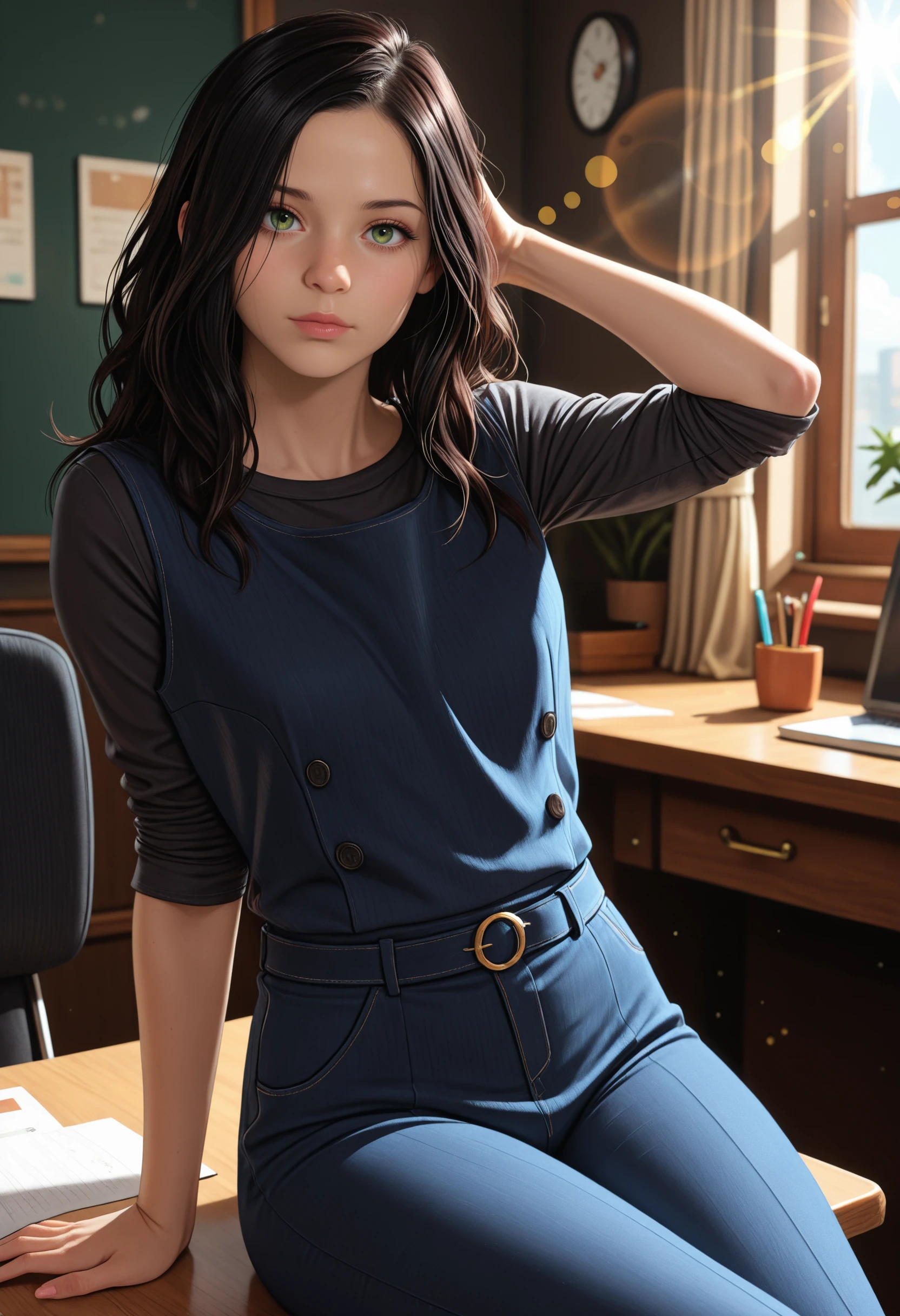 RE7Eveline, 1girl, black hair, long hair, green eyes