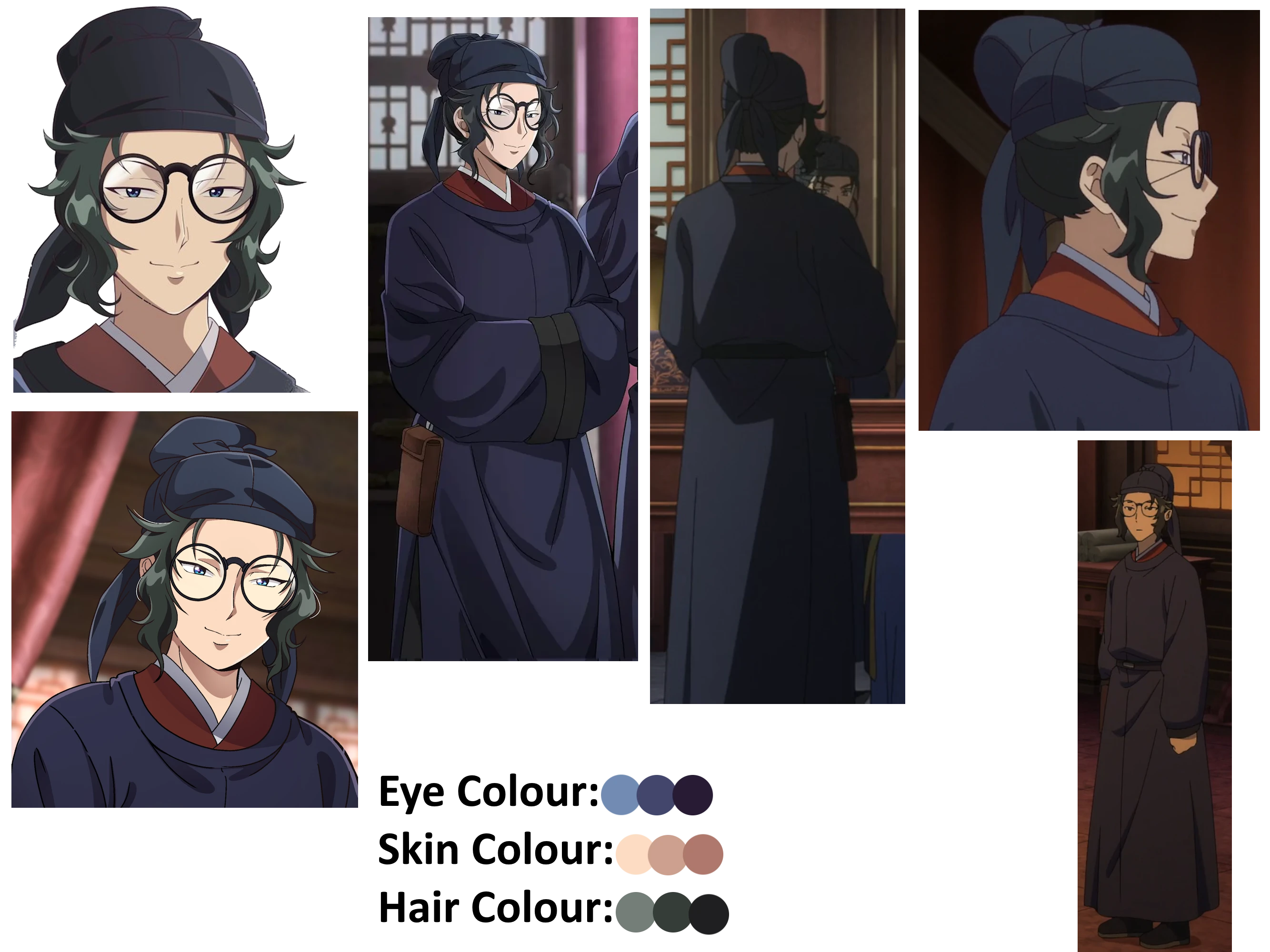 deep blue black 幞头 headwrap,prussian blue 圓領衫 robe,black 靴,male chinese ancient hanfu,