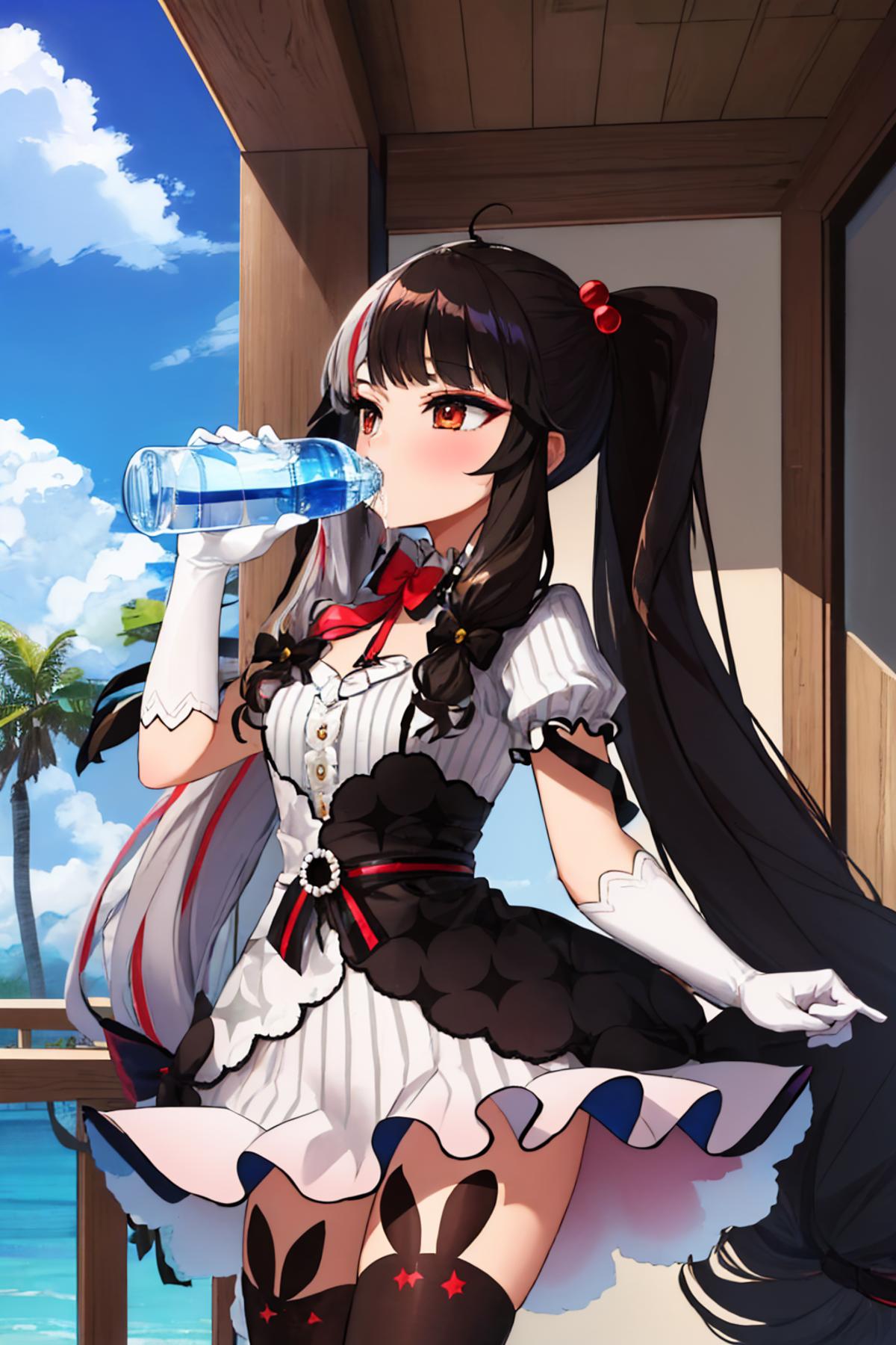 Add things like "water bottle, alcohol, wine bottle" to your prompt to controll the drink.