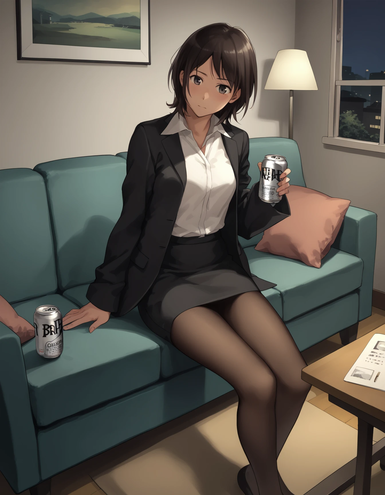 takahashi maya, skirt suit, black jacket, white shirt, pencil skirt, pantyhose