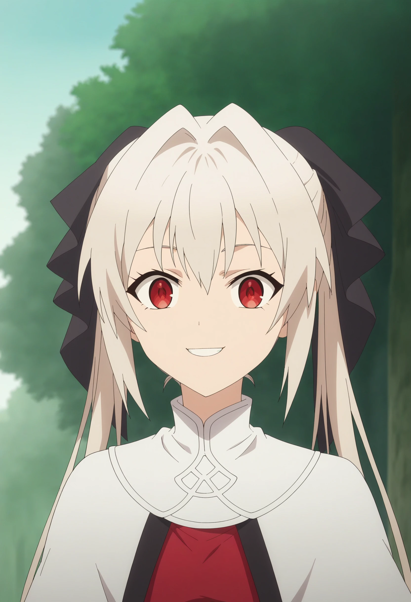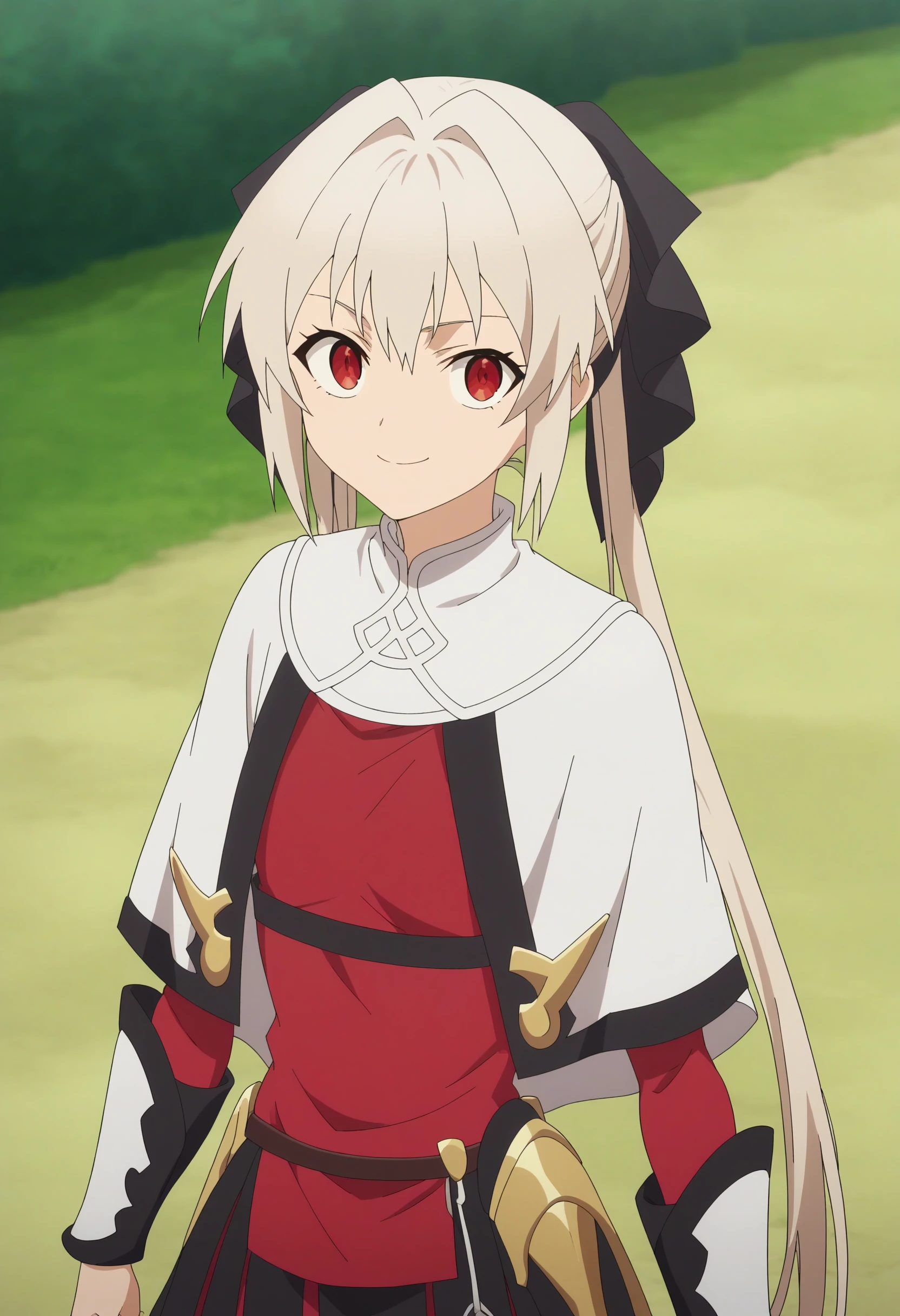Base Outfit - bracers, hair ribbon, white boots, skirt, black pantyhose, red shirt, white capelet, belt,