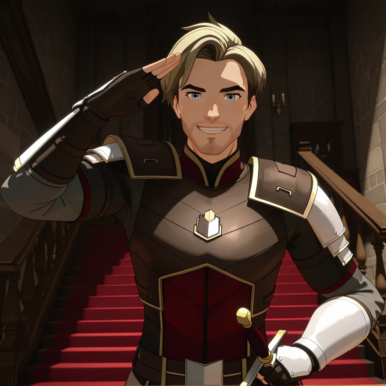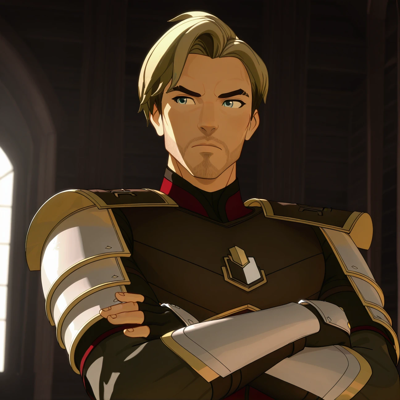 Soren: s0r3n, 1boy, blonde hair, short hair, blue eyes, muscular male, facial hair, beard, brown hair, stubble, manly