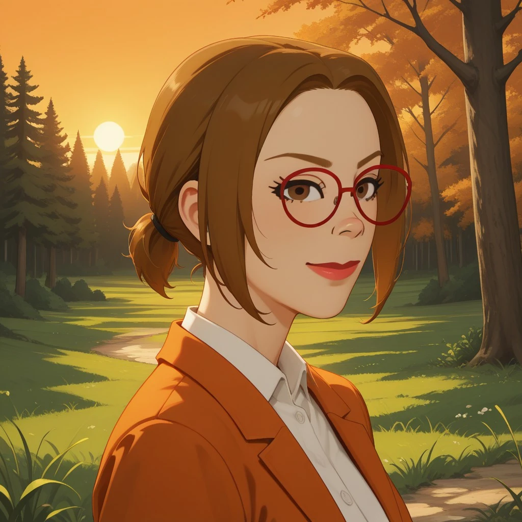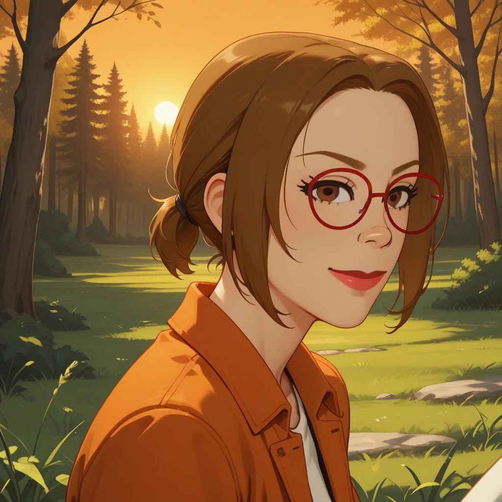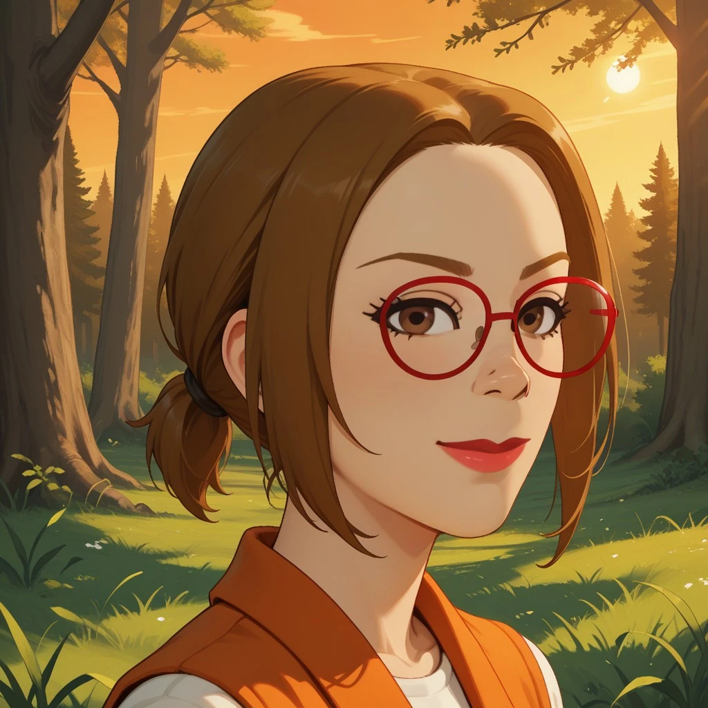 AneshkaOC, 1girl, dark blonde hair, short ponytail, brown eyes, red glasses, lips