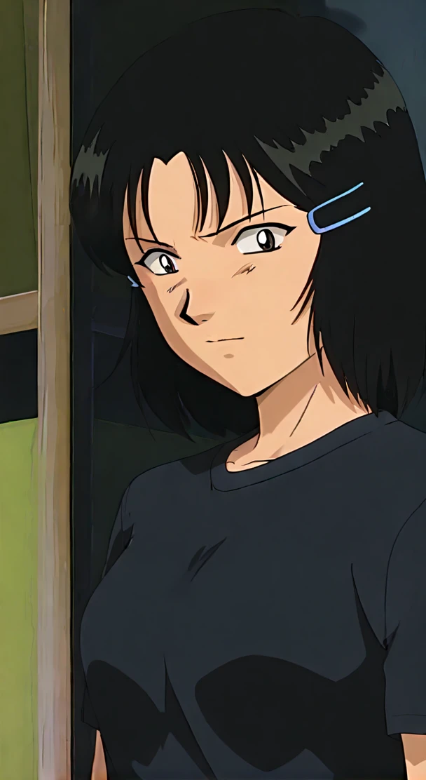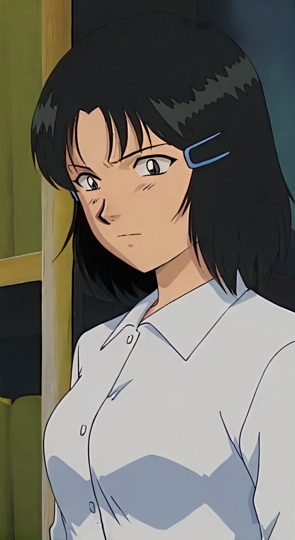 anime screencap,anime coloring<lora:Yusa Chiemi - Kindaichi Sonen no Jikenbo v2:0.9>1girl, solo, short hair,, shirt, black hair, hair ornament,, hairclip,,retro artstyle.Medium ,
