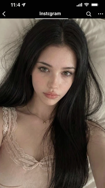 L1n4, black hair, strong iphone camera flash