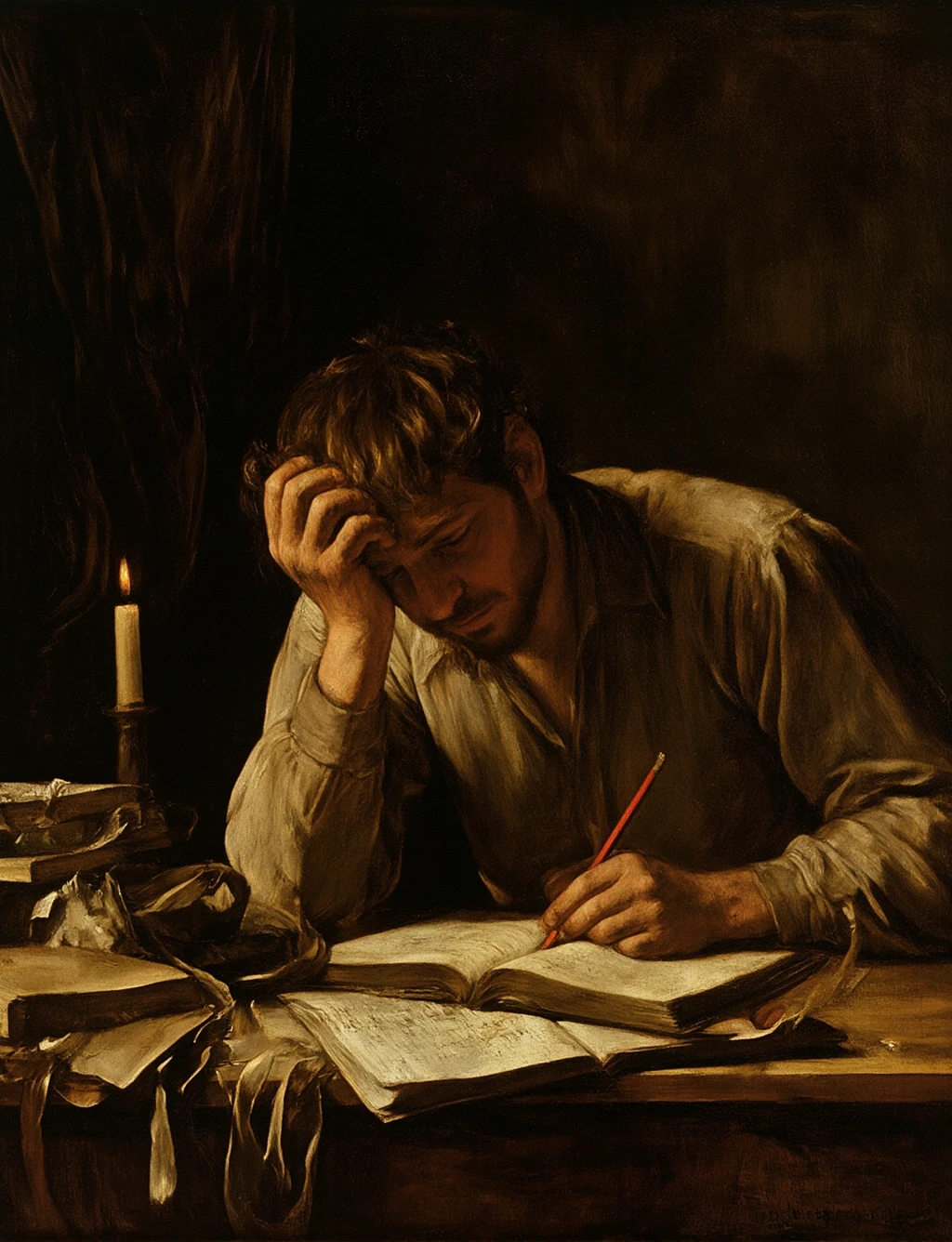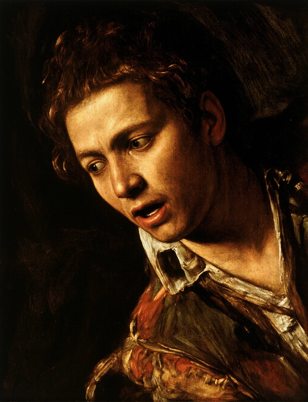 Caravaggio (Michelangelo Merisi da Caravaggio, 1571–1610) is remembered as one of the most influential painters of the Baroque era. His works broke away from idealized Renaissance traditions, favoring radical realism and dramatic chiaroscuro. A single shaft of light often cuts across the darkness, igniting flesh and fabric with sudden brilliance while leaving the rest in impenetrable shadow. His brushstrokes are dense and tactile, pressing pigment into rough textures of cloth, stone, and skin, creating an atmosphere of raw immediacy and intensity. The emotional climate of his paintings is equally striking: charged with tension, ????????, devotion, or revelation, always suspended between shadow and illumination.