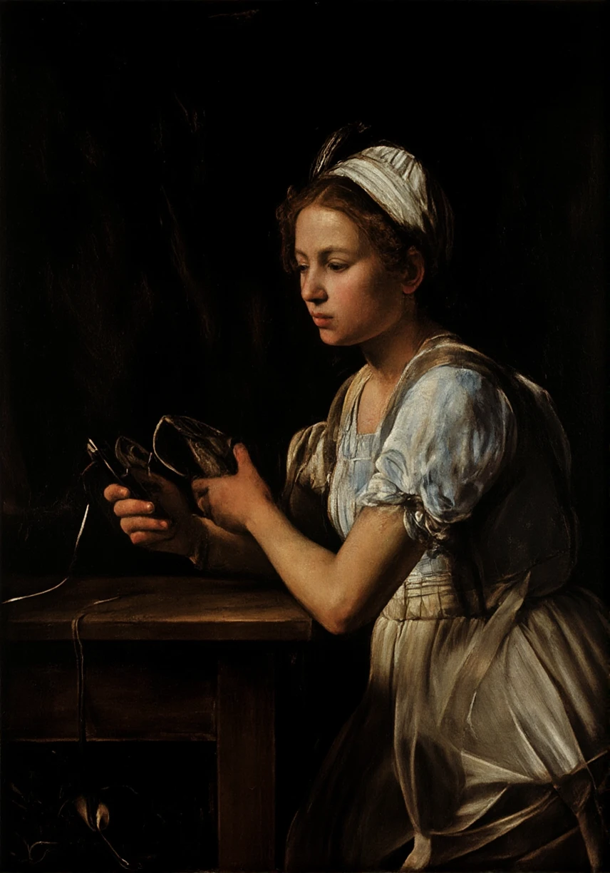This LoRA seeks to capture those essential qualities — the dramatic light, the textured brushwork, and the solemn atmosphere — and bring them into the generative process. Trained for use with Pixelwave, it performs especially well in single-figure portraits, highlighting the sharp contrasts and painterly surfaces that define Caravaggio’s style. It can also be applied to multi-figure scenes to suggest group compositions with a heightened sense of drama. However, in complex group shots the faces may not always resolve with the same precision as in solo portraits, so the LoRA is best leveraged when the focus is on one or two central figures.