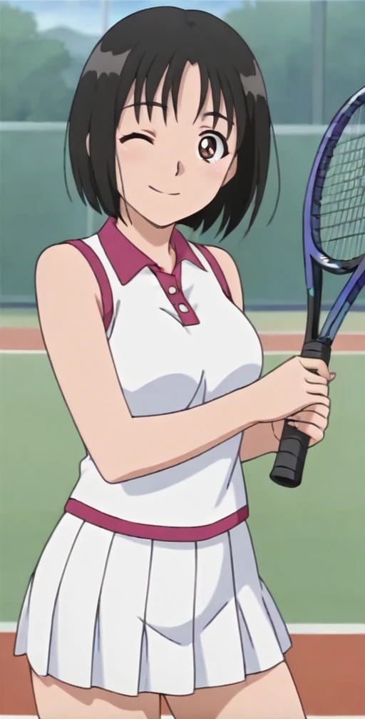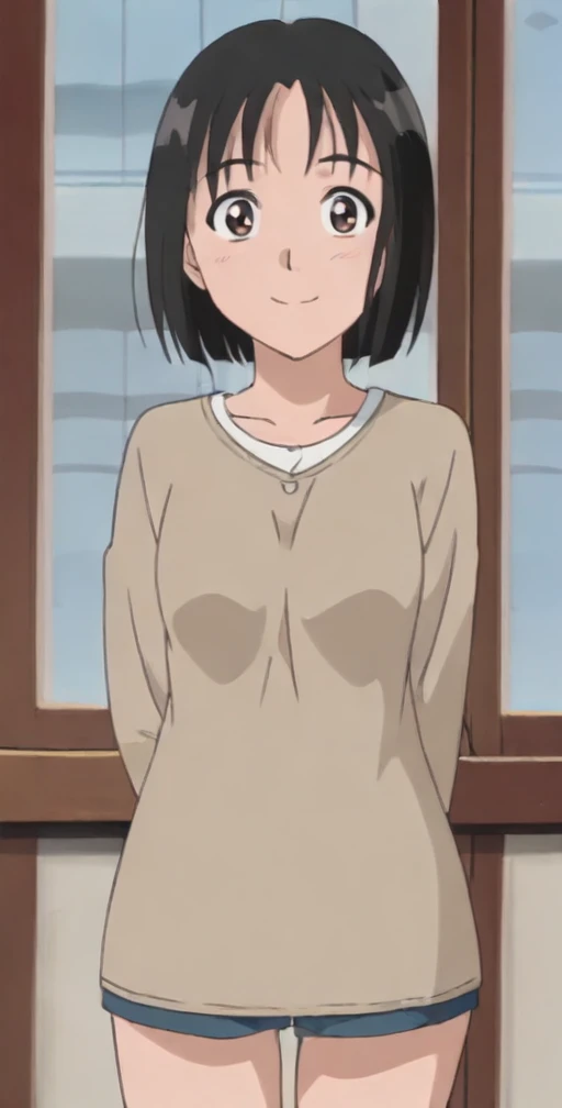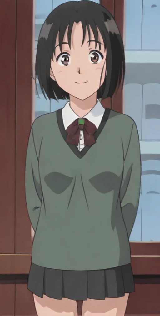 ,anime coloring<lora:Horiguchi Keiko - Kindaichi Sonen no Jikenbo v1:0.9>1girl, solo, looking at viewer, smile, short hair, black hair, brown eyes, bob cut, Horiguchi Keiko,retro artstyle,
