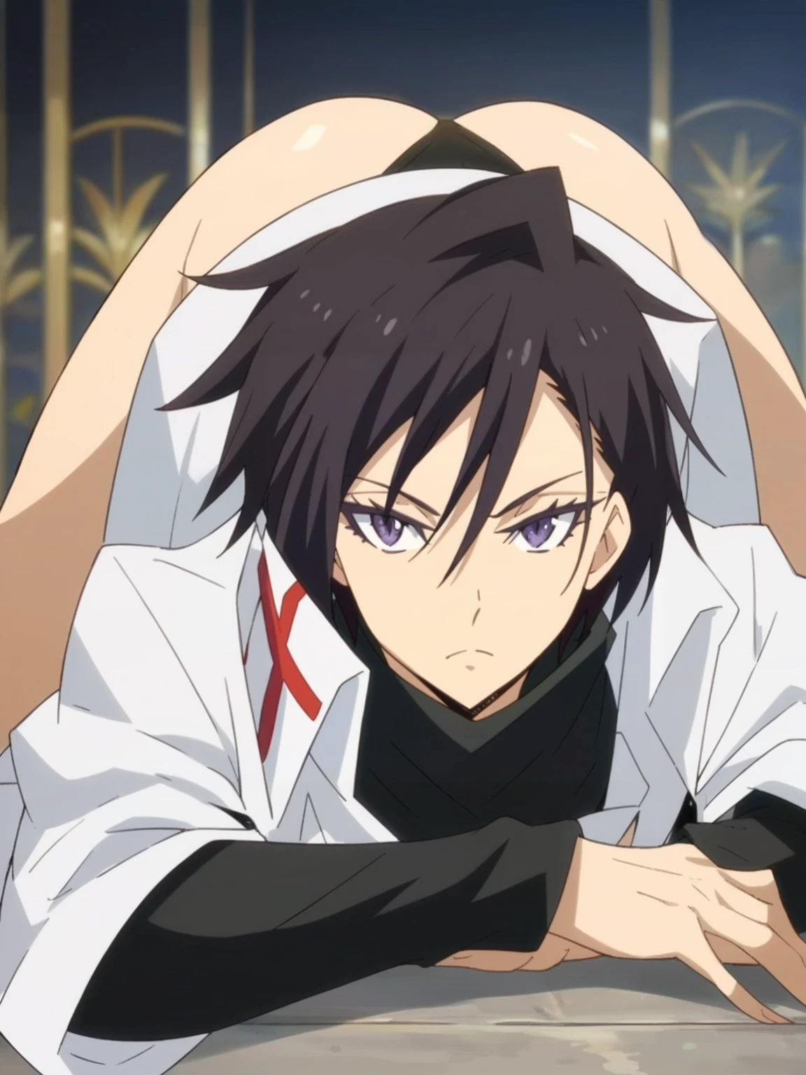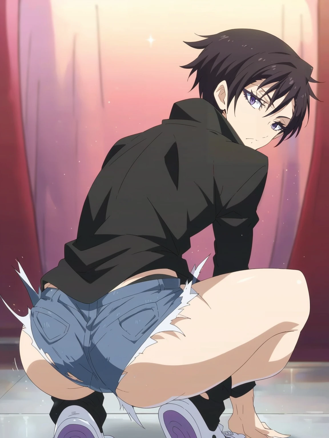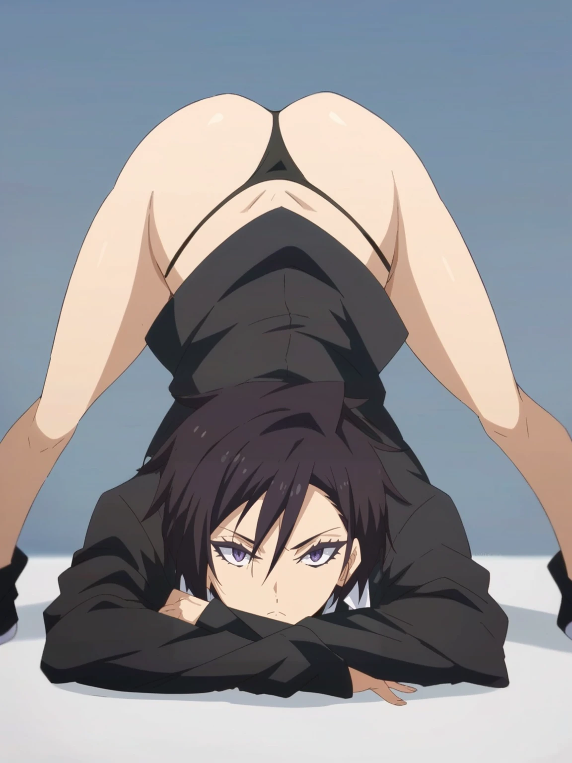 Recommend prompt: "h_ta, 1girl, pale skin, black hair, short hair, purple eyes, long eyelashes"
