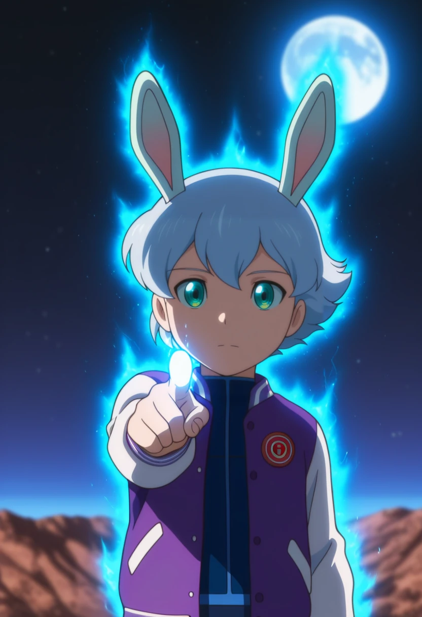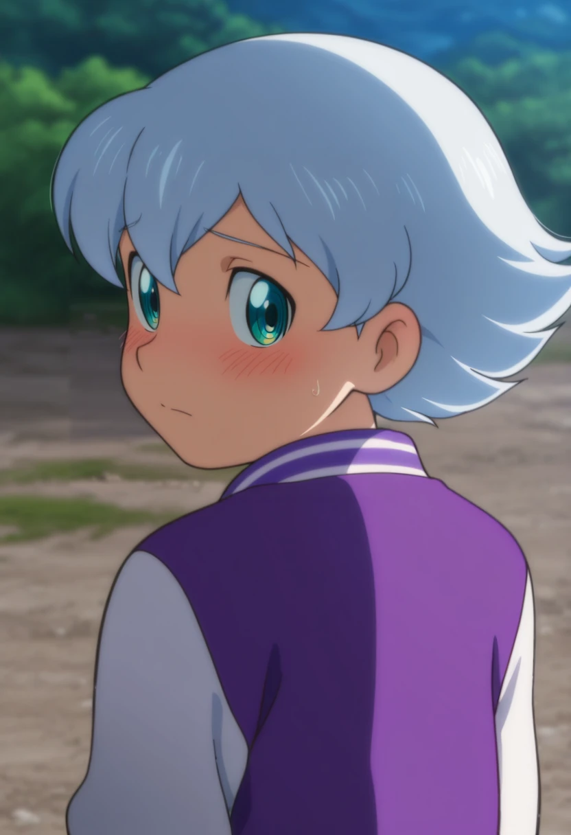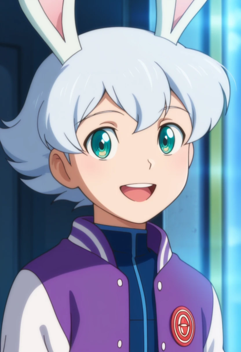 luca, white hair, teal eyes, short hair