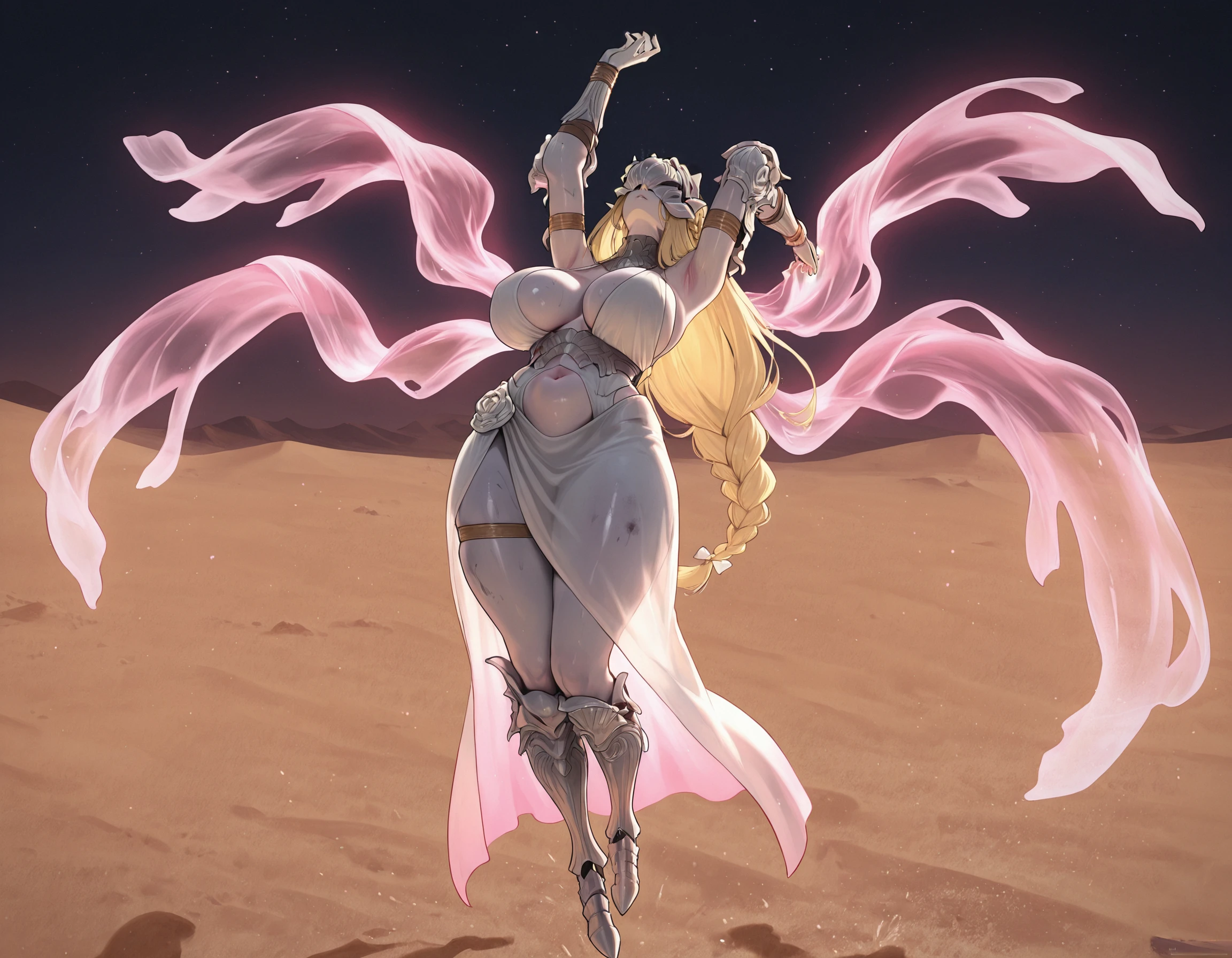 phase 2 prompt: balancers_p2,1girl,armor,dirty blonde hair,braid,long hair,grey skin,helmet,covered eyes,gorget,halterneck,white sarong,plunging neckline,clothing cutout,multiple translucent wings,pink wings