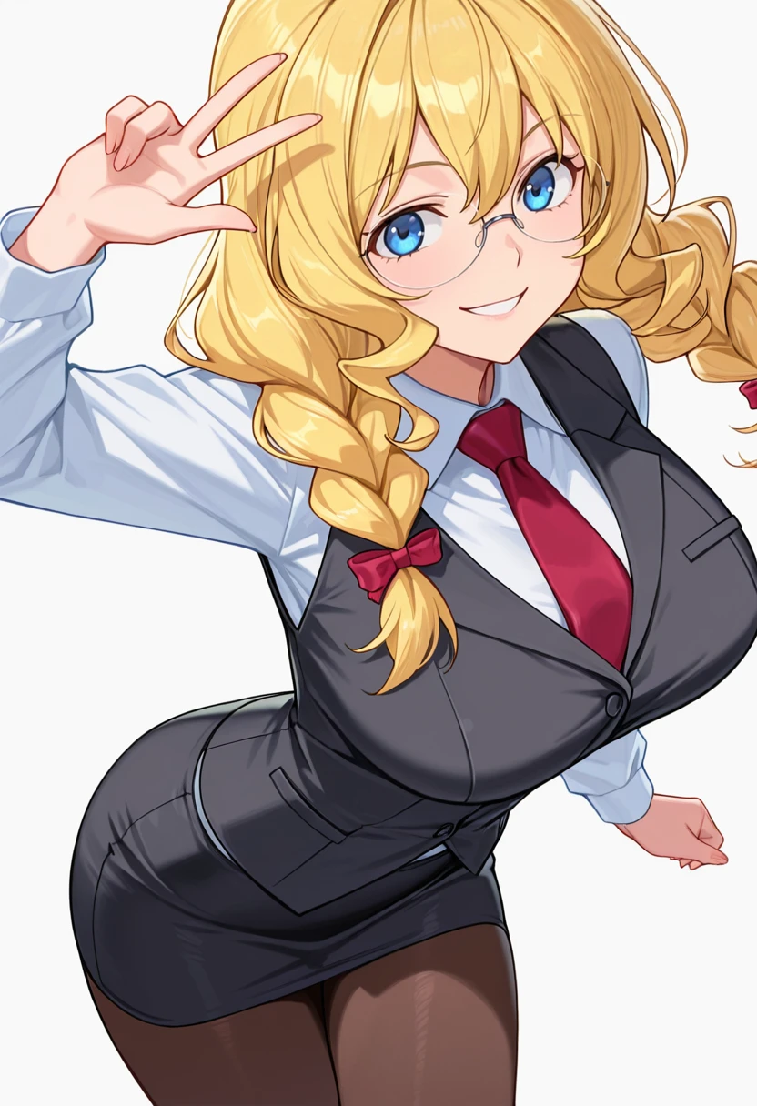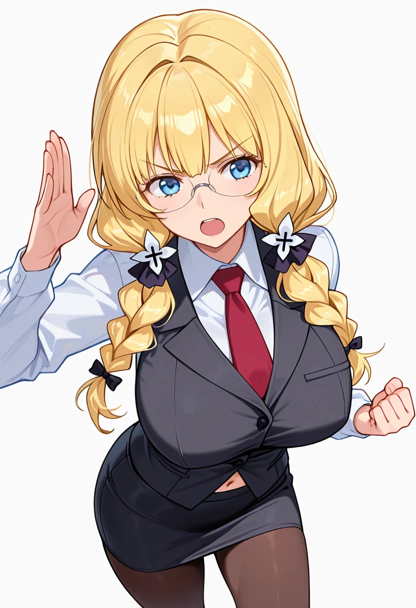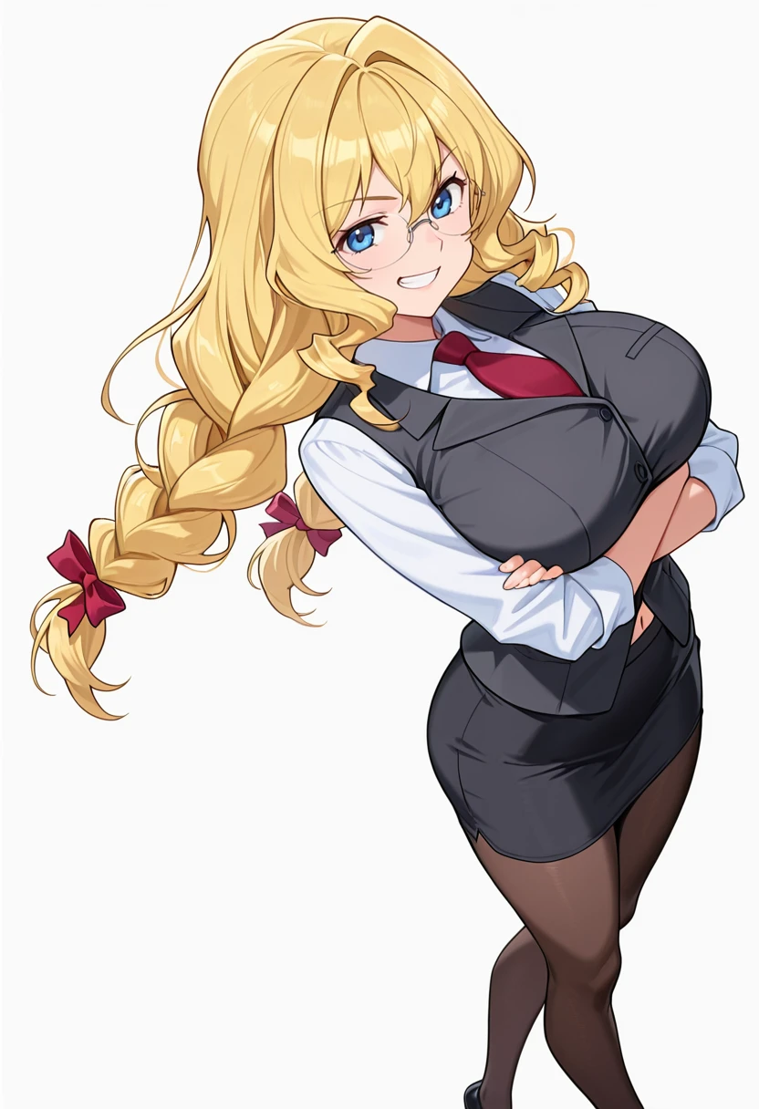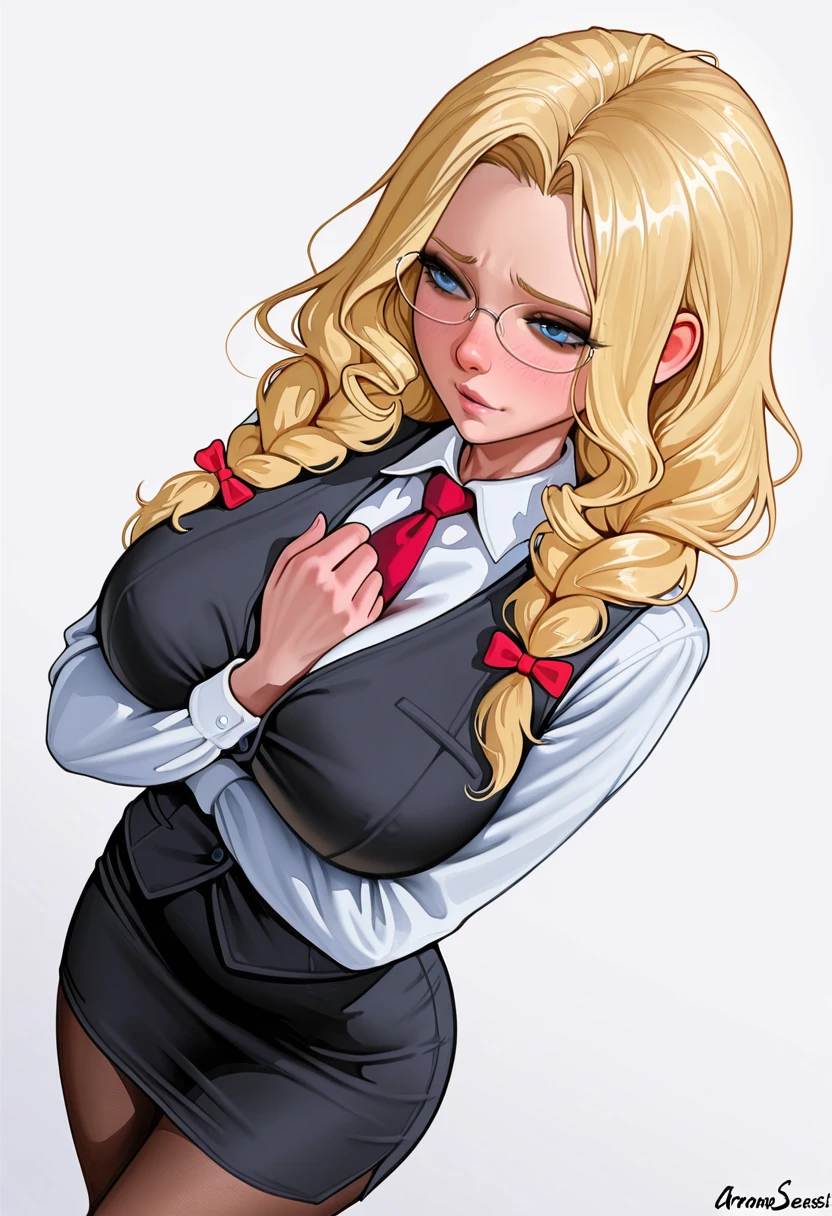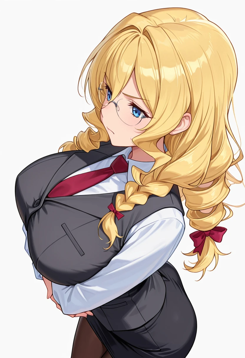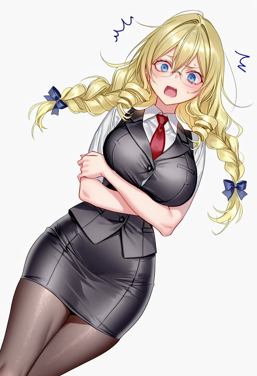 necktie, vest,red necktie, rimless eyewear, pantyhose,office lady, pencil skirt, FAQ
