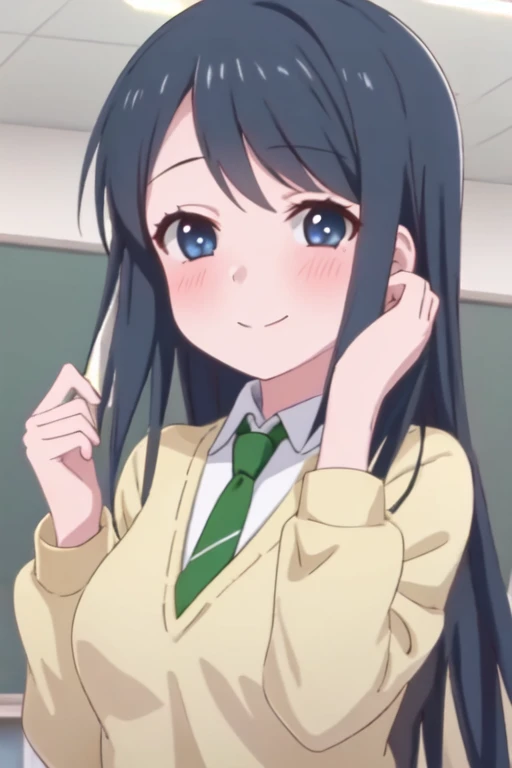 <lora:makinatsuov1:1>,1girl,bangs,black hair,blue eyes,blush,collared shirt,long hair,looking at viewer