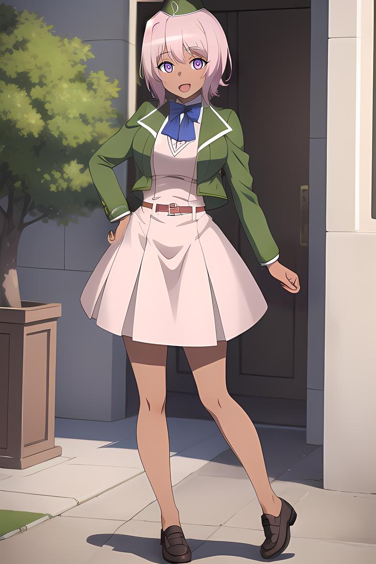 Trigger words for work outfit: Tanya, work outfit, green jacket, short pink hair, (for more look in my samples of her)
