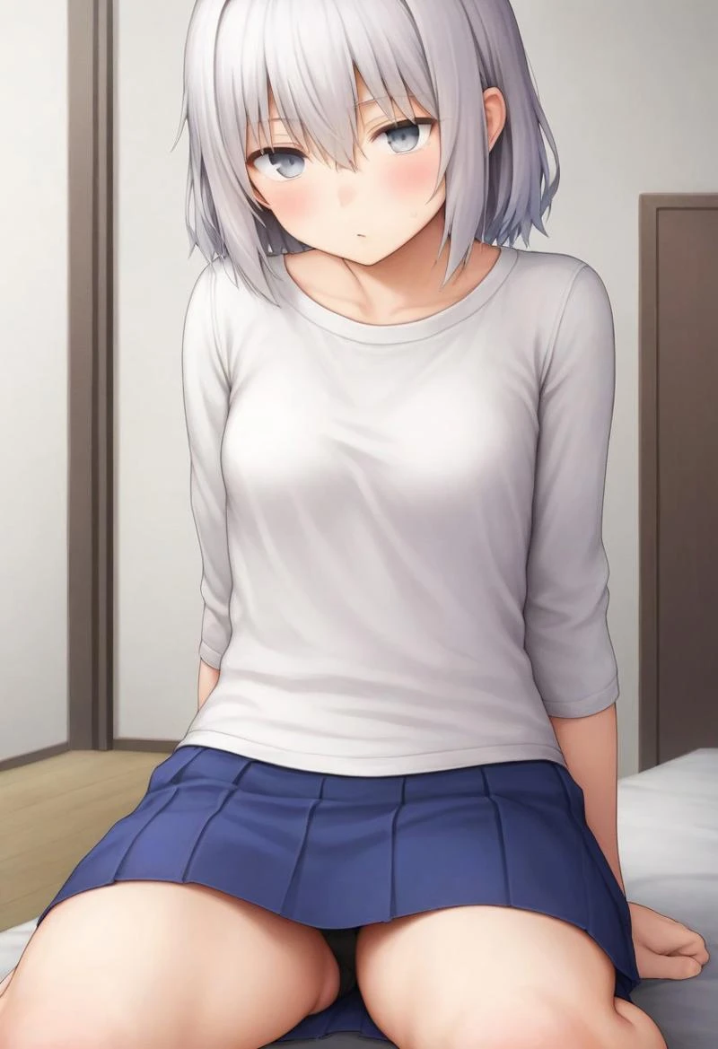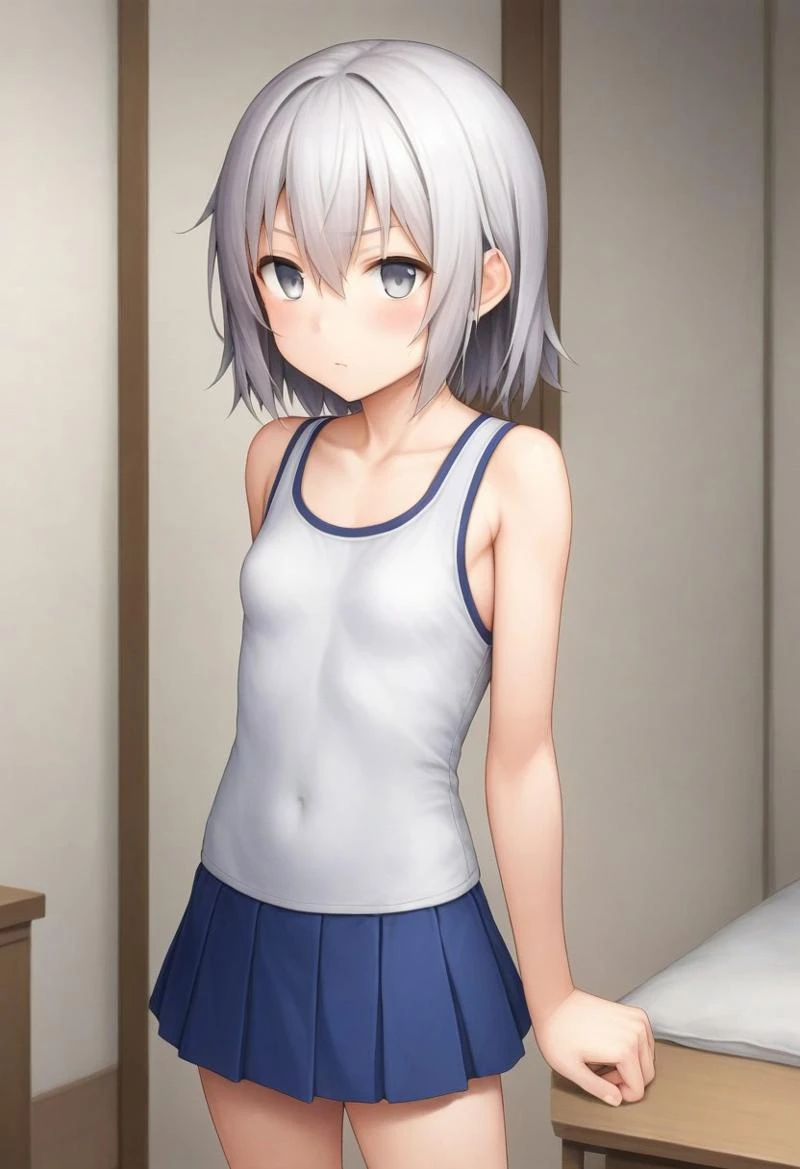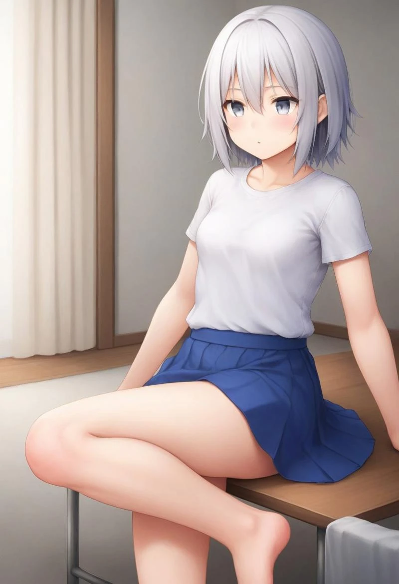 silver hair,medium length hair,hairs between eyes,silver eyes,small breasts