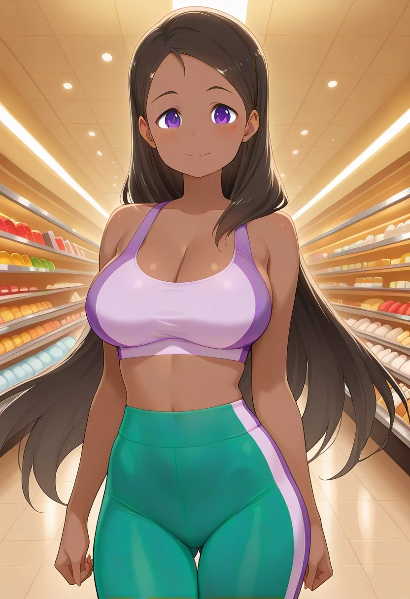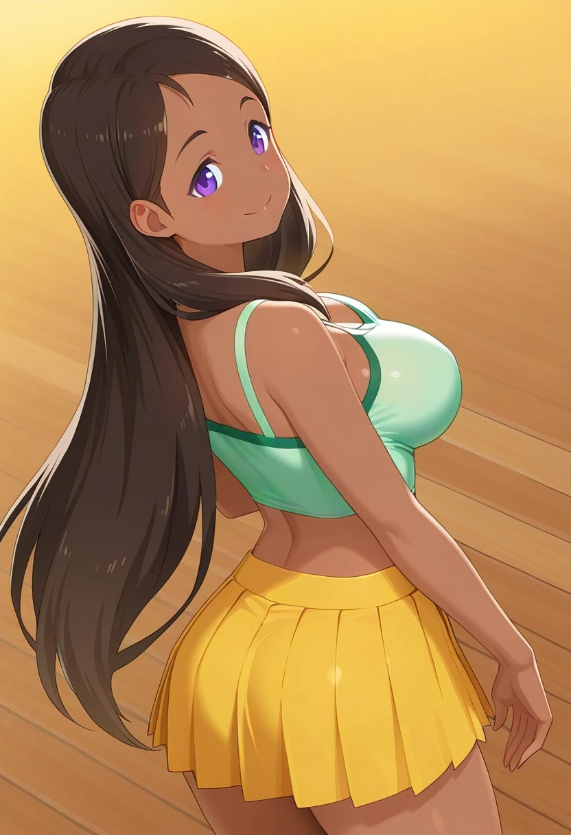 Devi_BC, dark skin, brown hair, long hair, purple eyes,