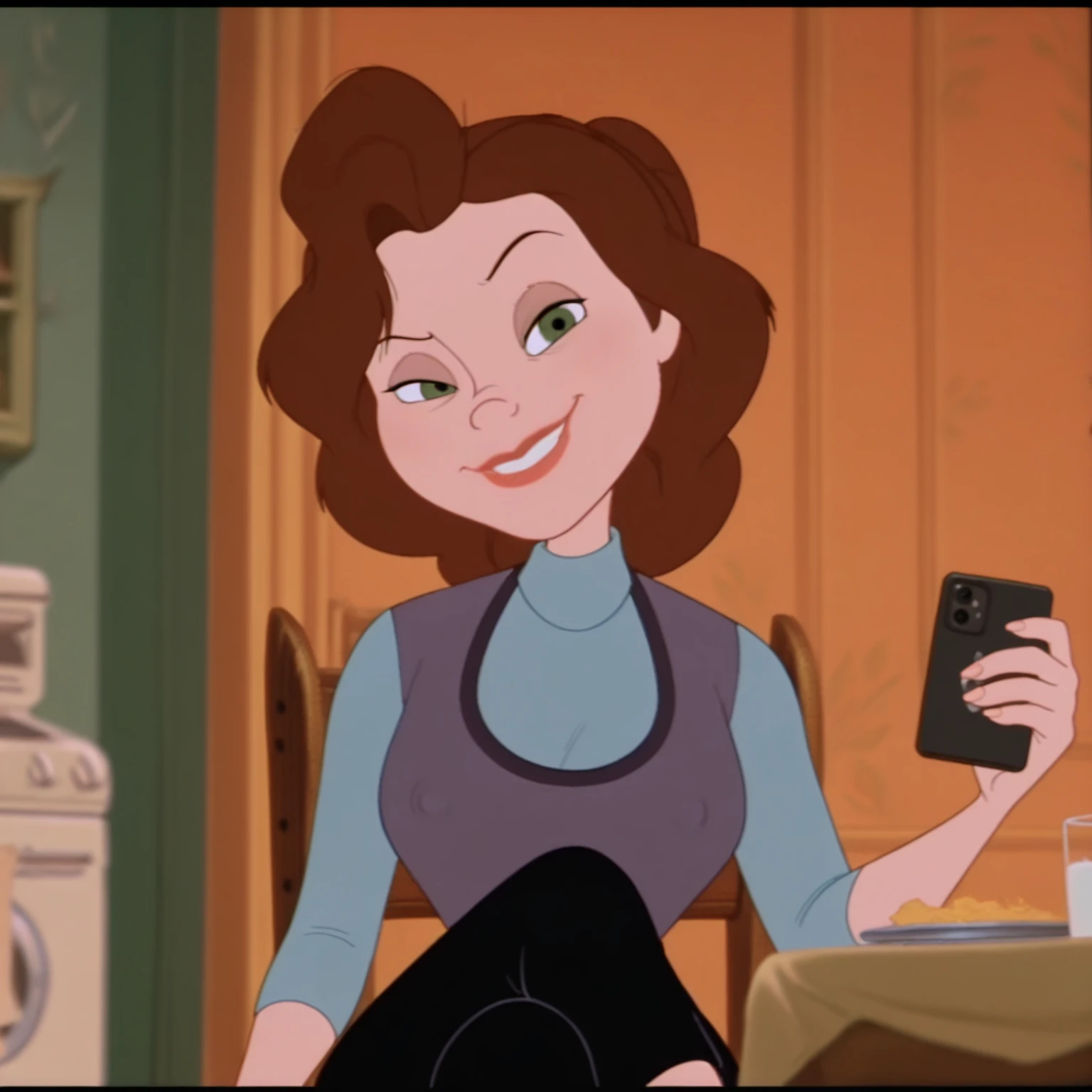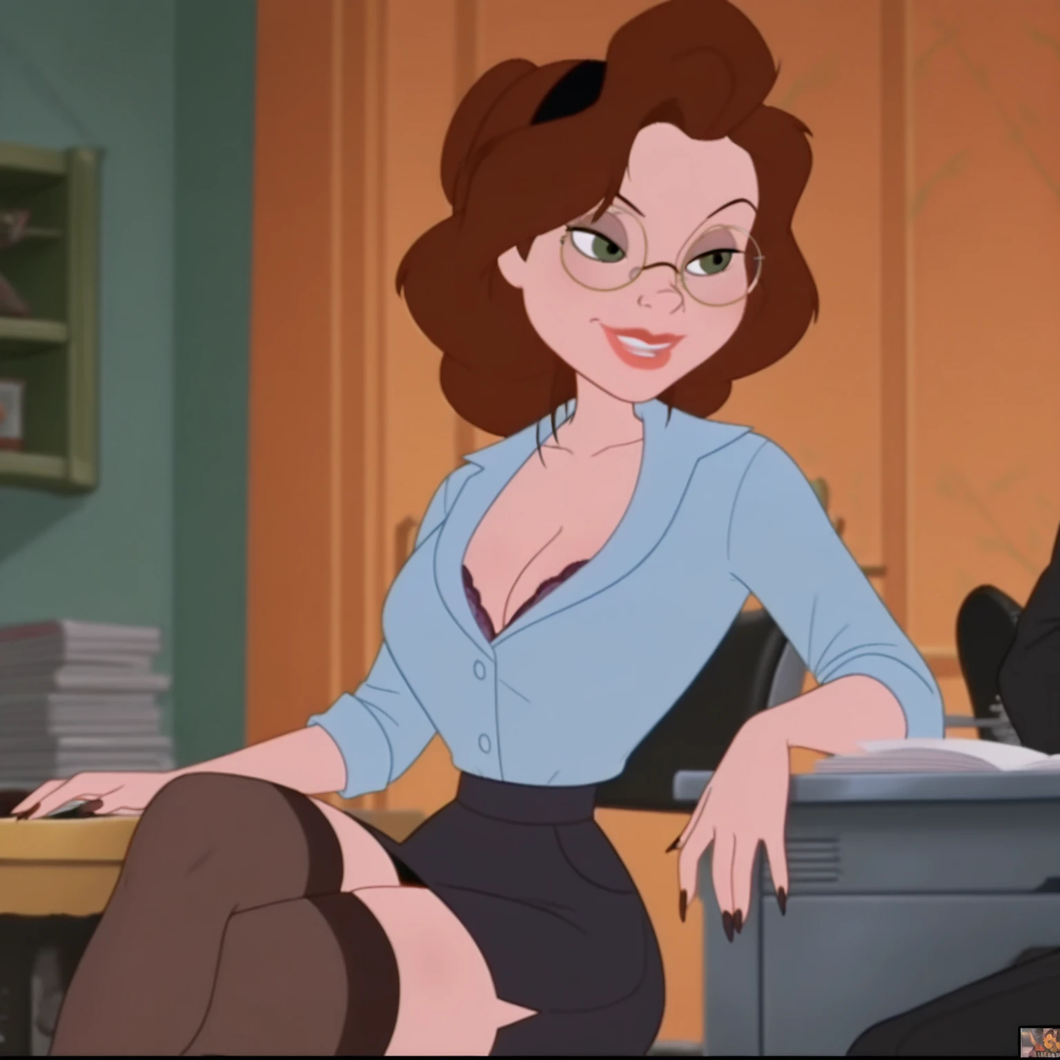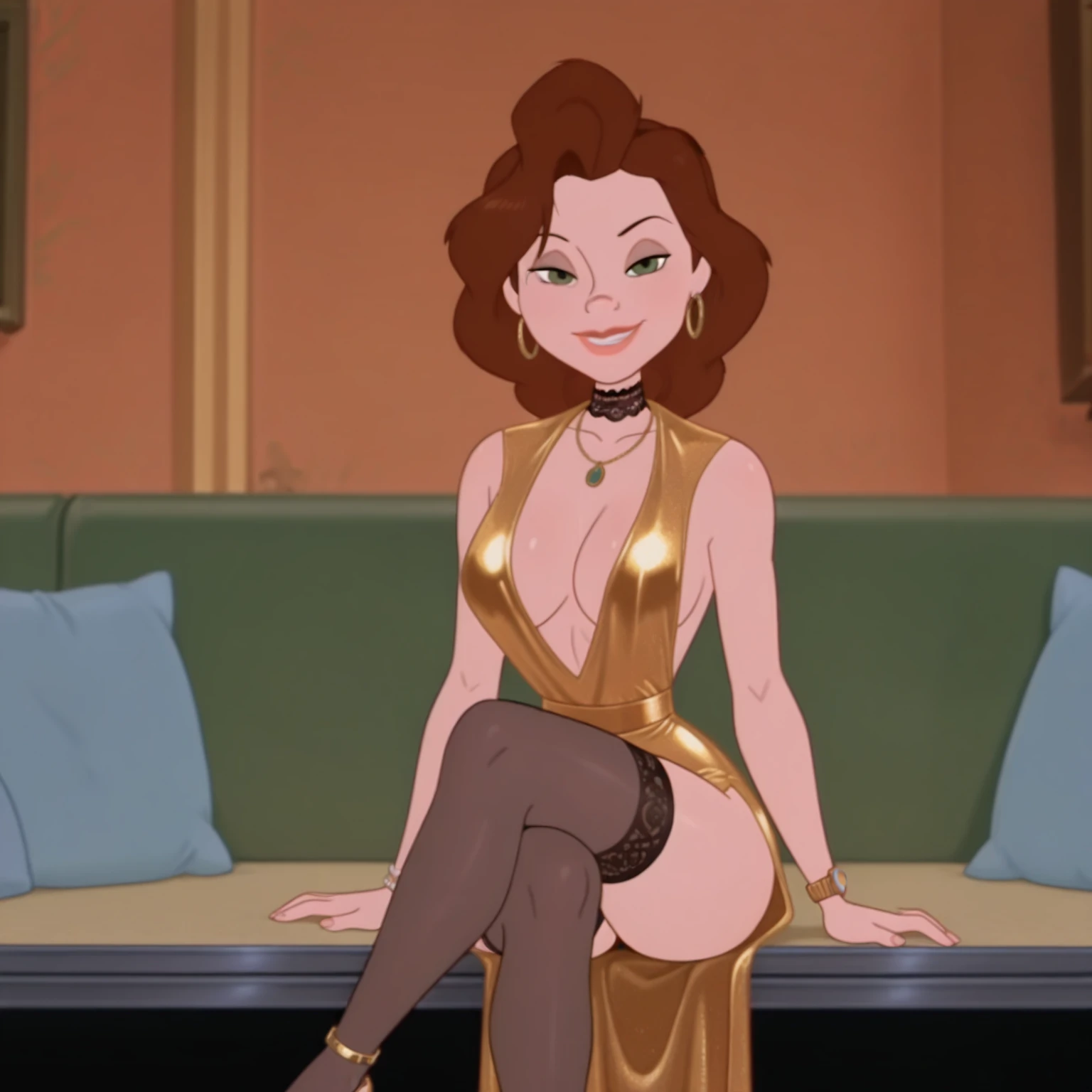 brown hair, short hair, green eyes, slender body, huge breasts, thin waist, mature woman, nose, lips, screencap, original style