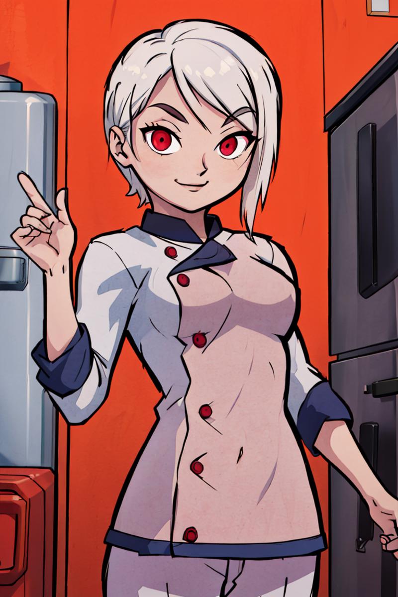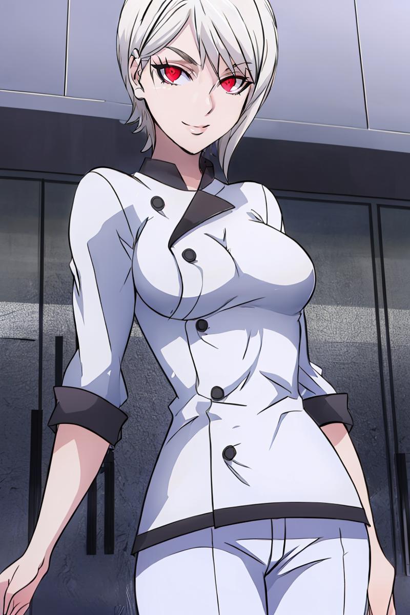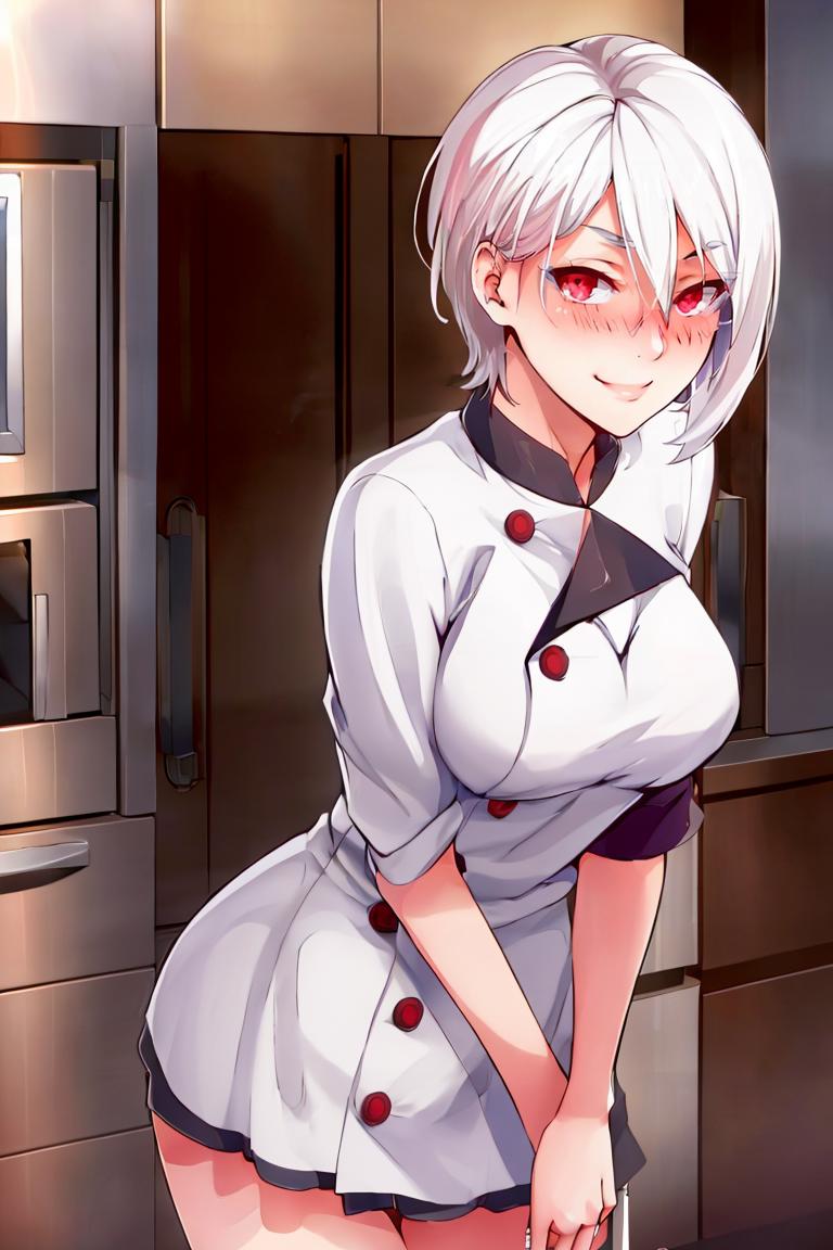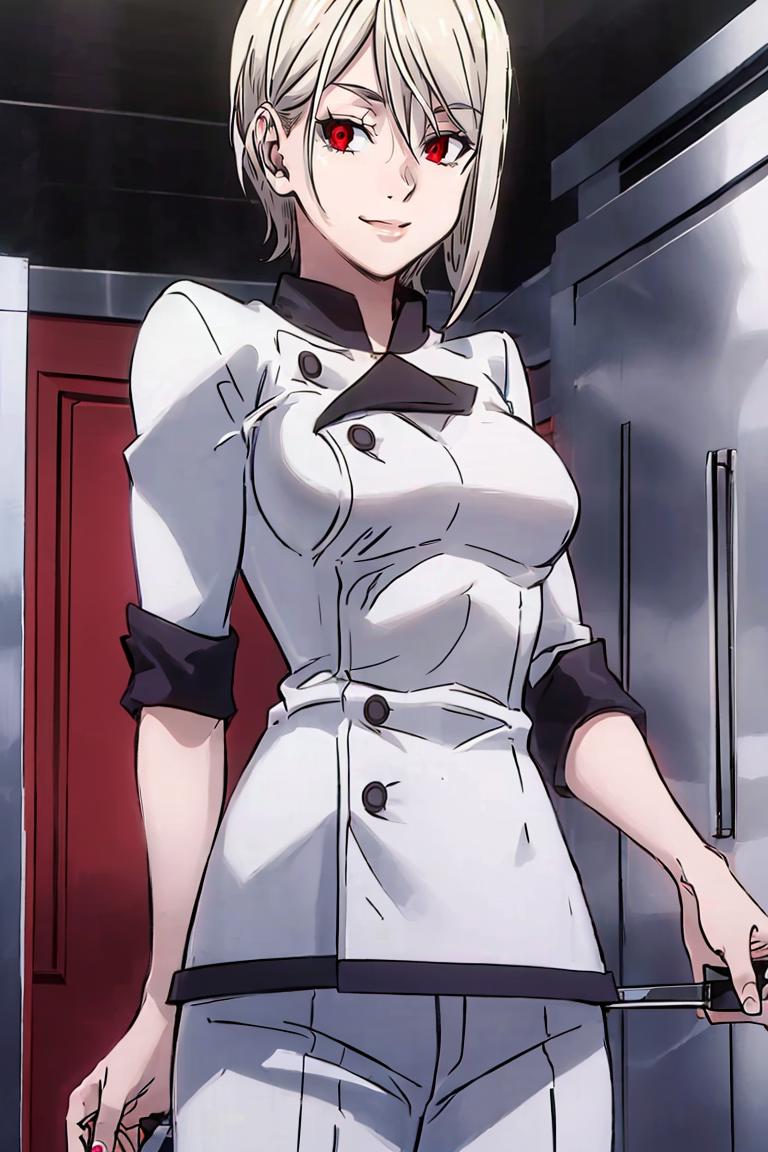 Nakiri_Alice_Shokugeki, white hair, short hair, red eyes, chef