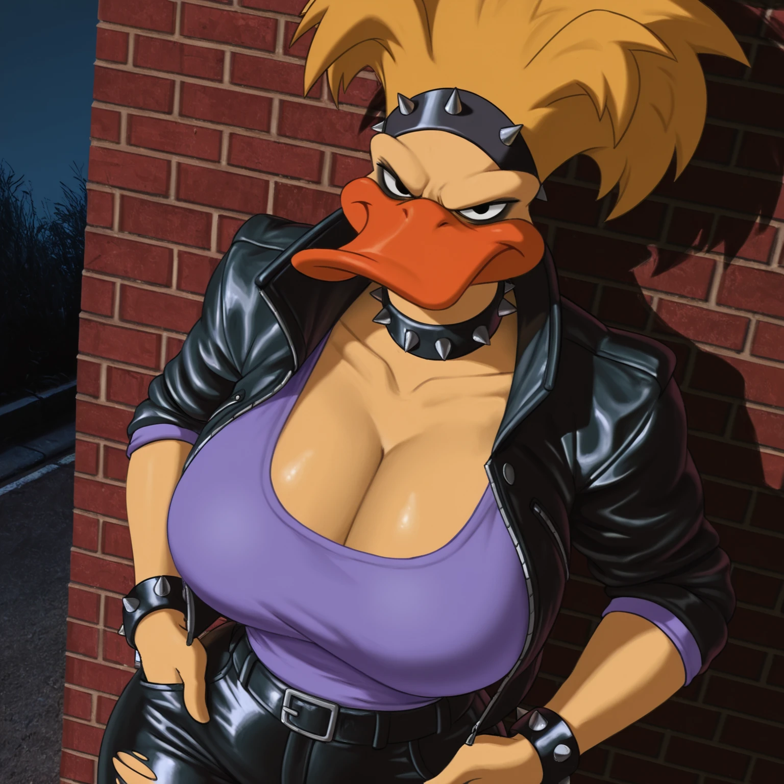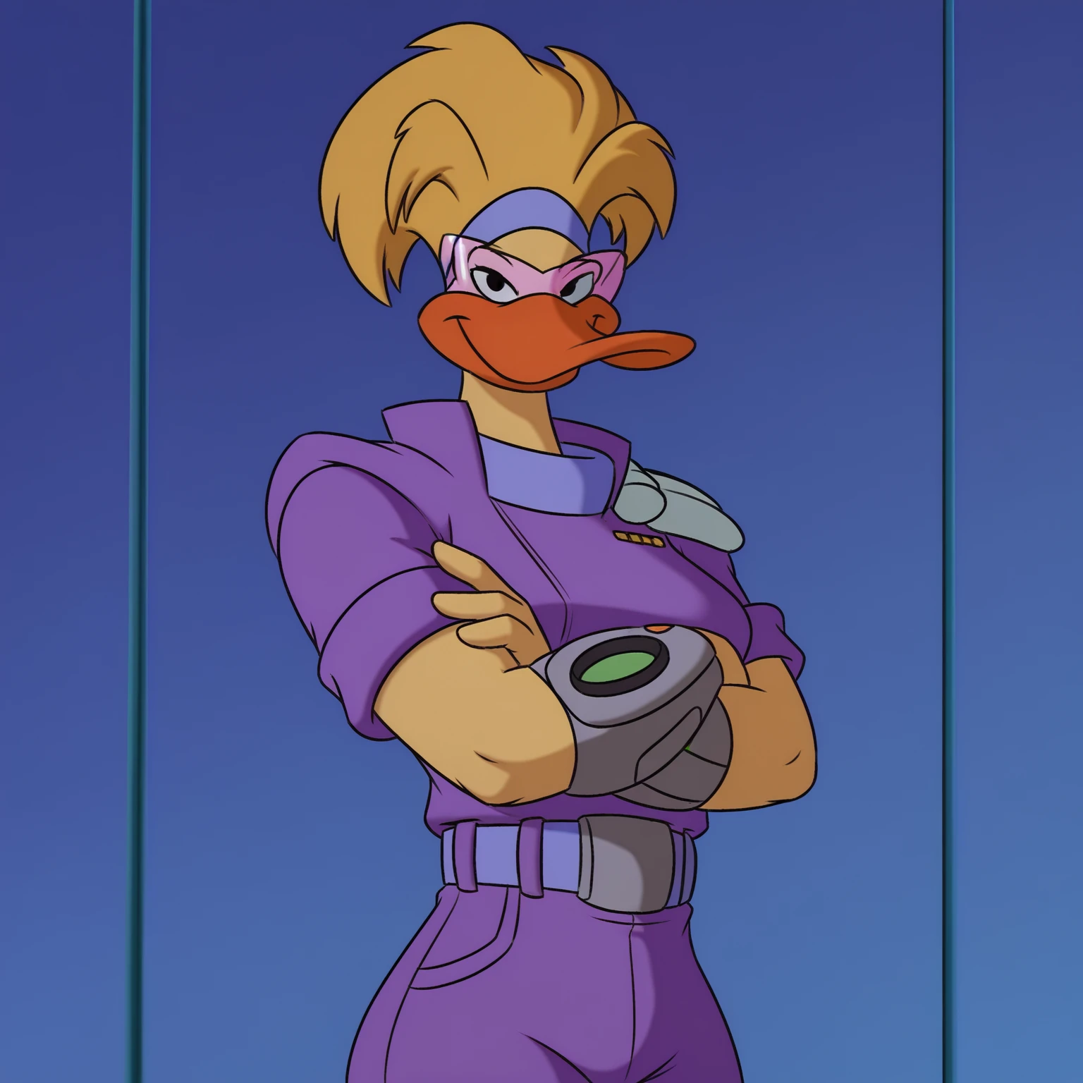 Tanya Vanderflock from Disney's animated show Mighty Ducks: The Animated Series. I've trained this with about 70 screencaps from the show in all 26 episodes when she appears on screen. It will get her outfit down pretty close, but her wrist gadgets don't generate accurately and sometimes the light-blue part of her topwear generates a different color. Everything else generates consistently well when it comes to her outfit. For character appearance it will generate her perfectly. One other thing to note is if you the "white sclera" prompt, then it'll only show her eyes with no sclera showing. You can have her hair down too if you're looking for a different hairstyle. Not sure if I'll do Mallory McMallard in the future, but we'll see.