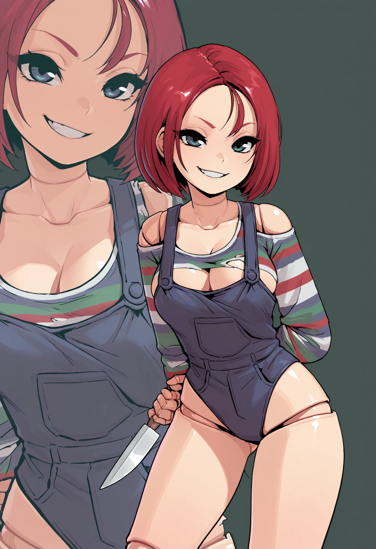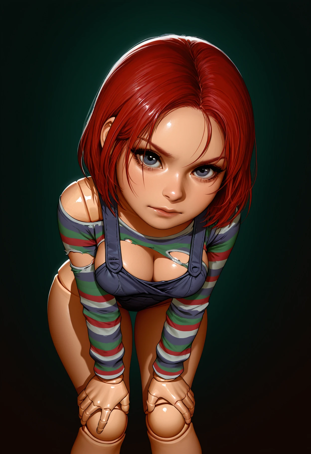 SuckyIL, red hair, long sleeves, leotard, overalls, doll joints, striped shirt, bare legs, torn clothes,