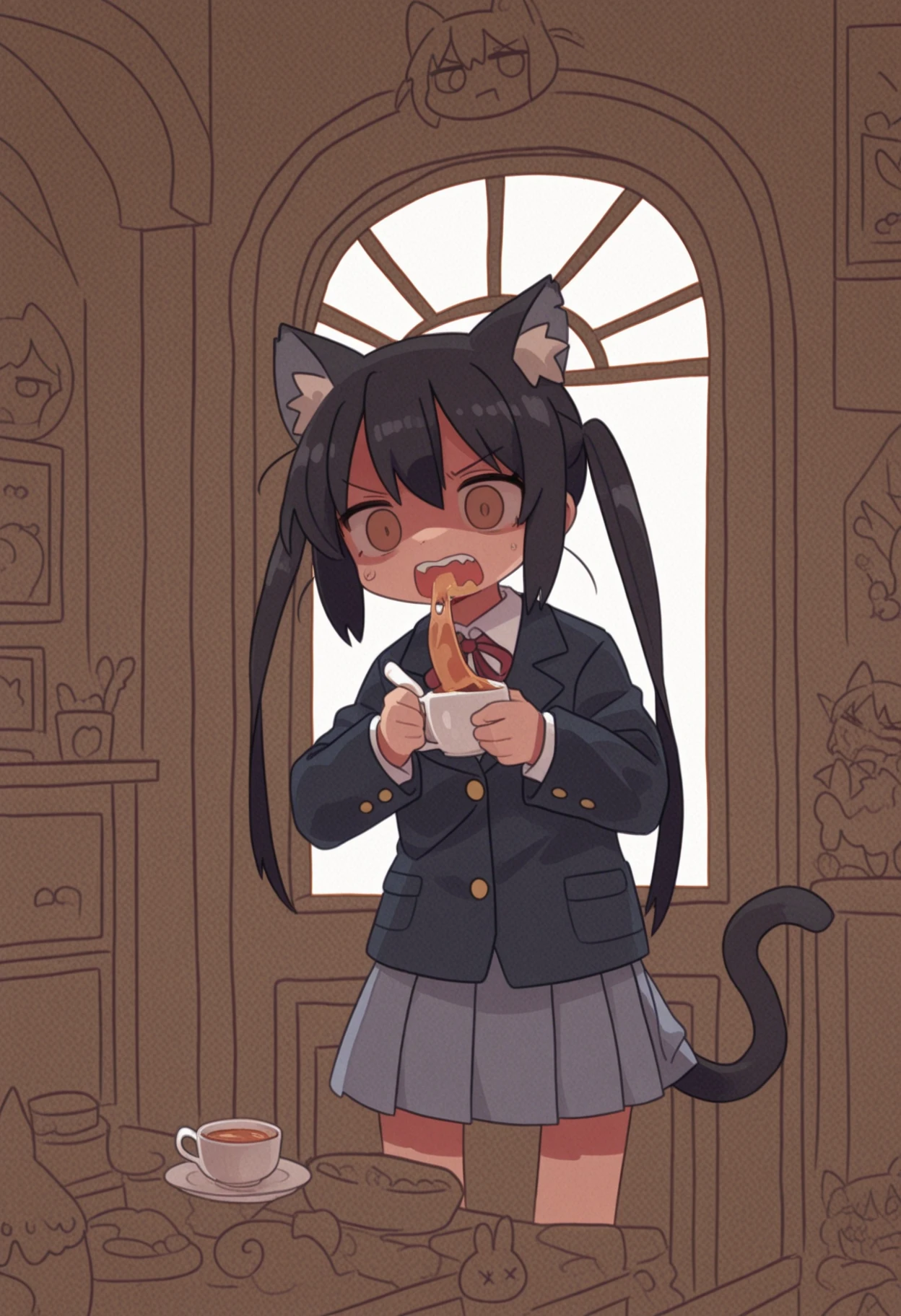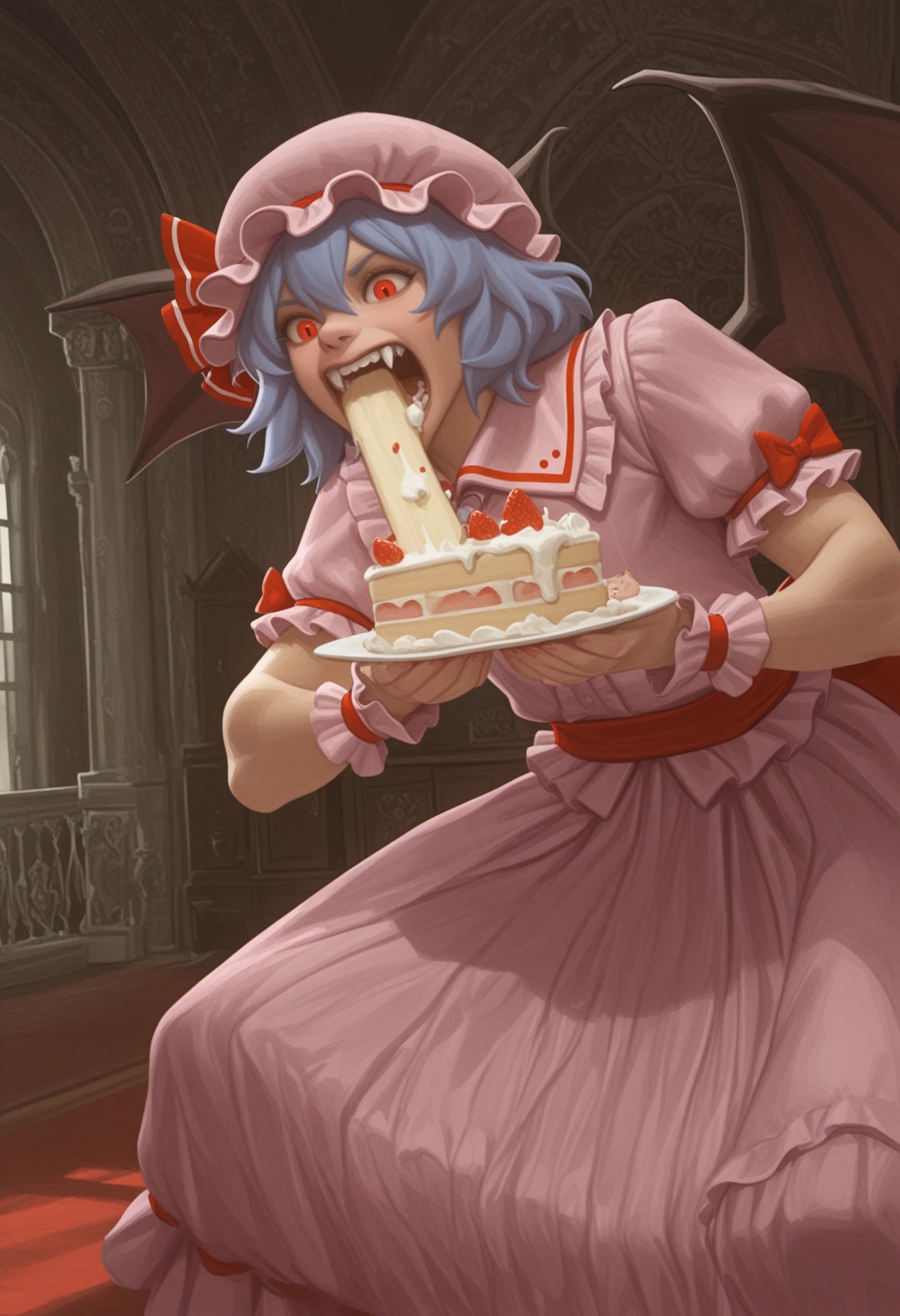 5a7urn, holding object, eating object, holding, eating, open mouth, teeth, fine art parody, parody,