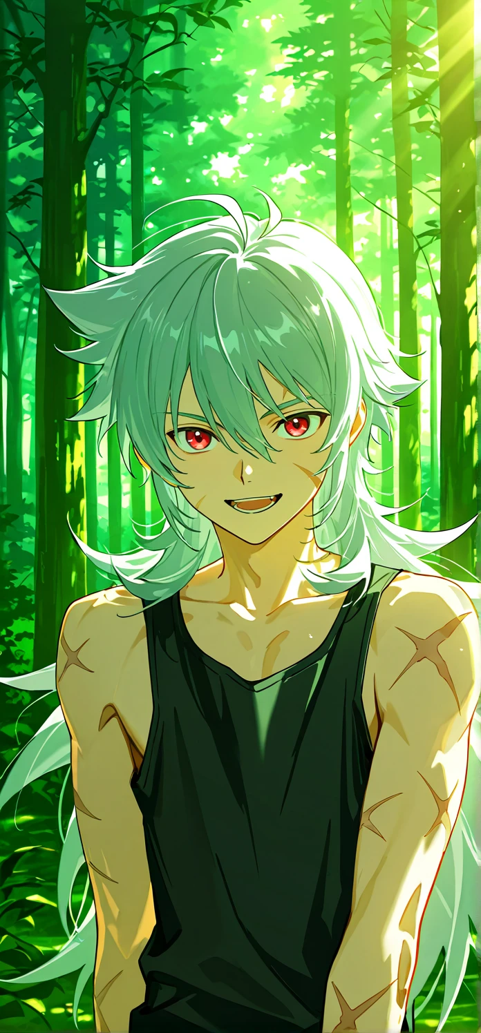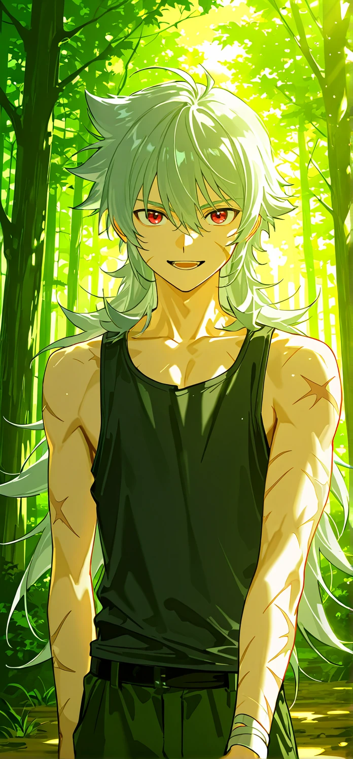 Trigger words: razor,long hair,grey hair,red eyes,scar,scar on face,scar on arm