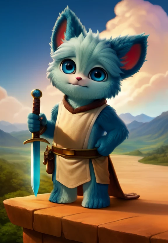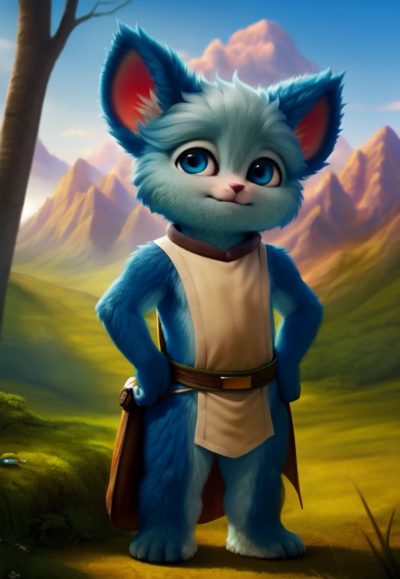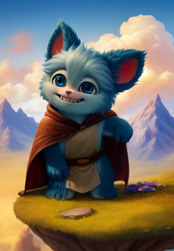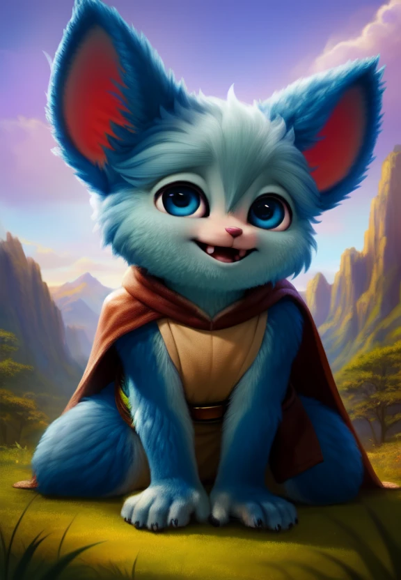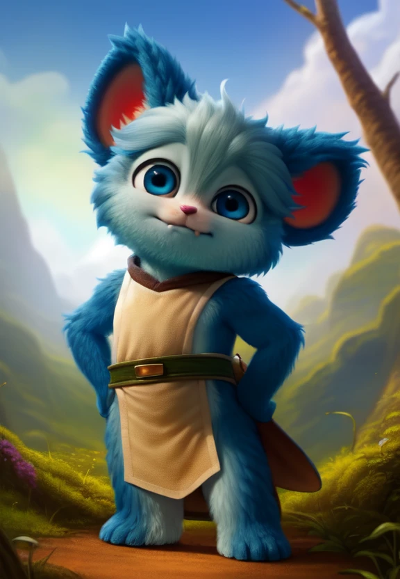 NubsPoobaCartoon, blue fur, blue eyes, furry, chibi, fangs,