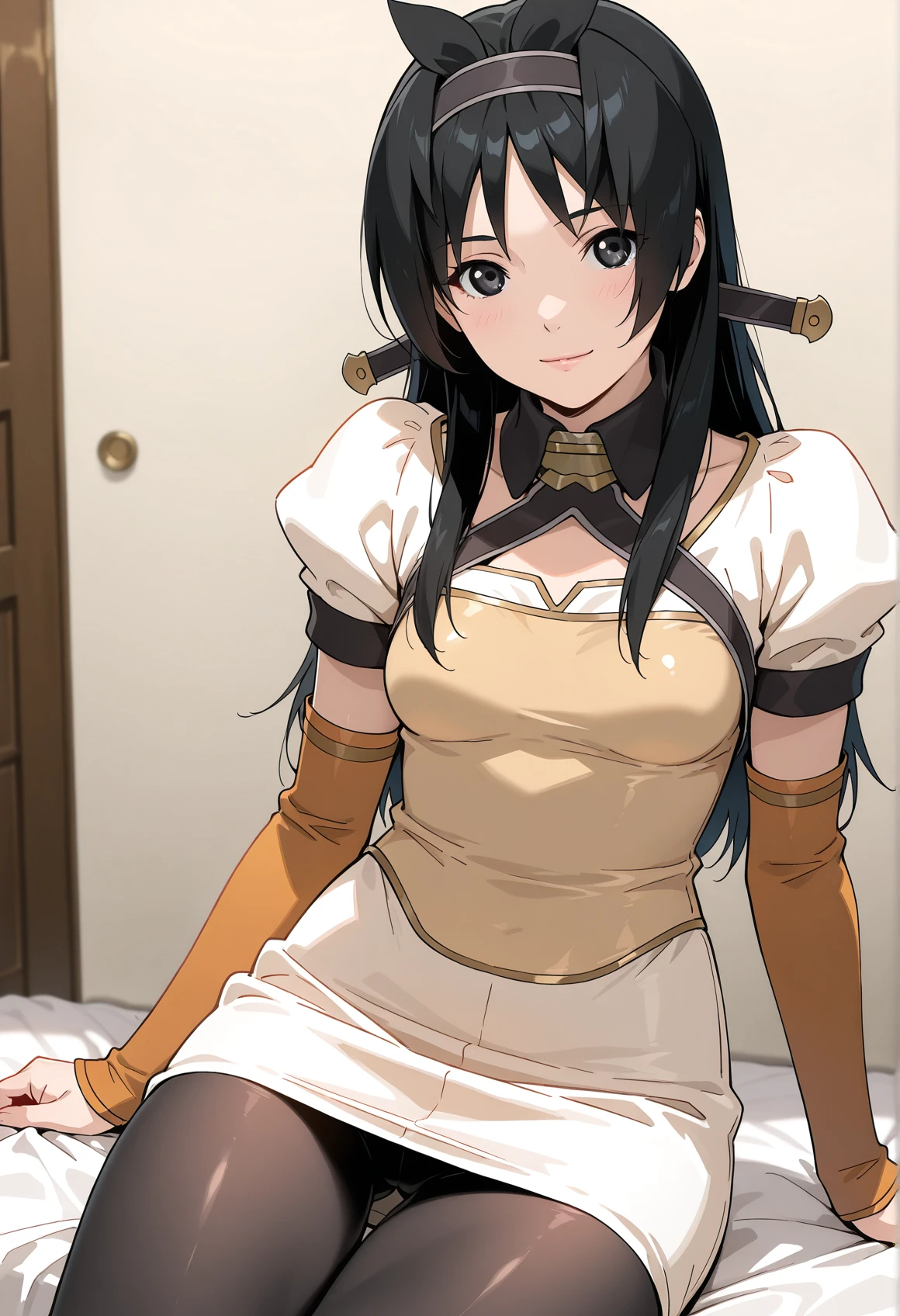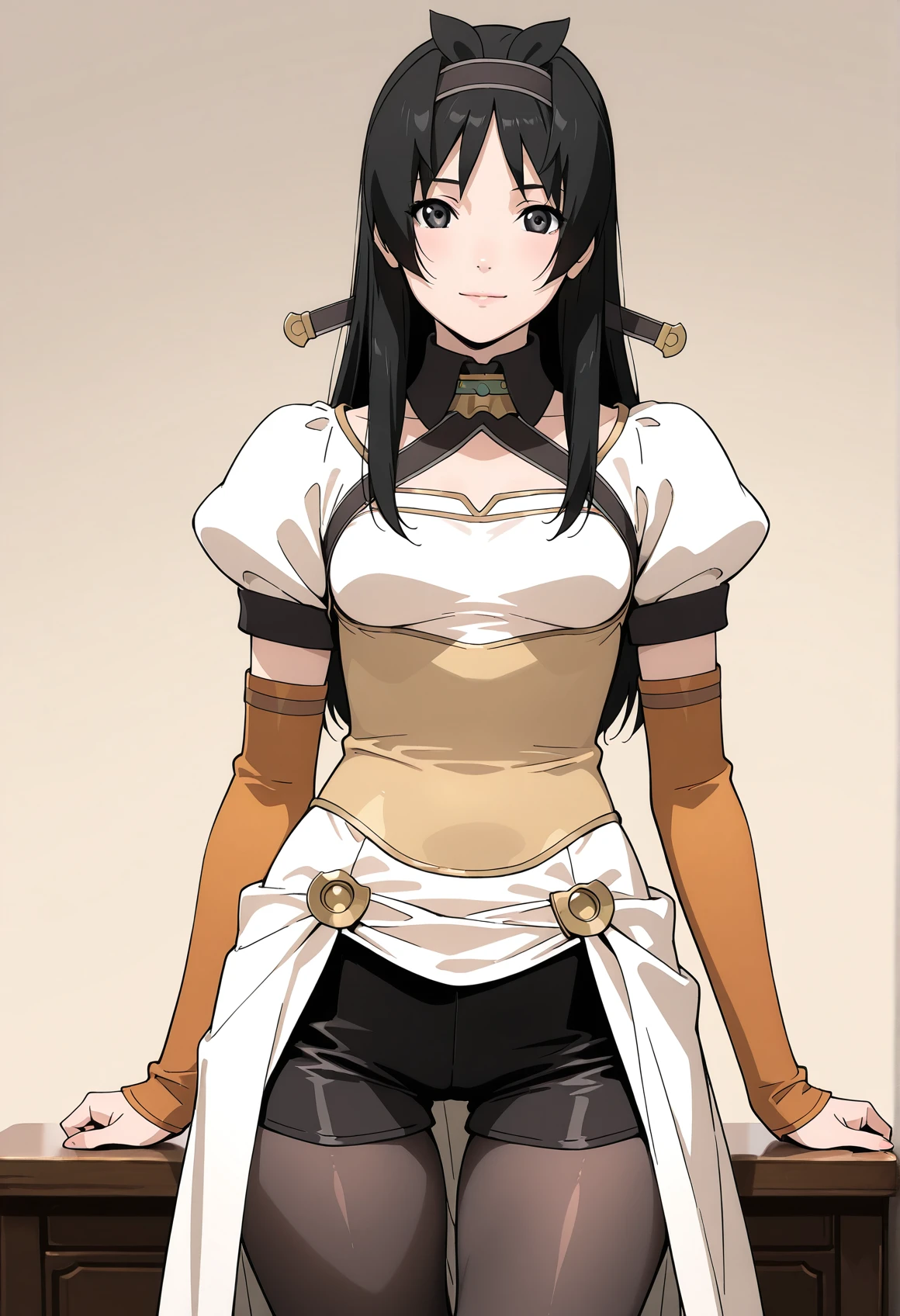 white dress,short sleeves,detached sleeves,puffy sleeves,black shorts,thigh gap,pantyhose,season2 style:
