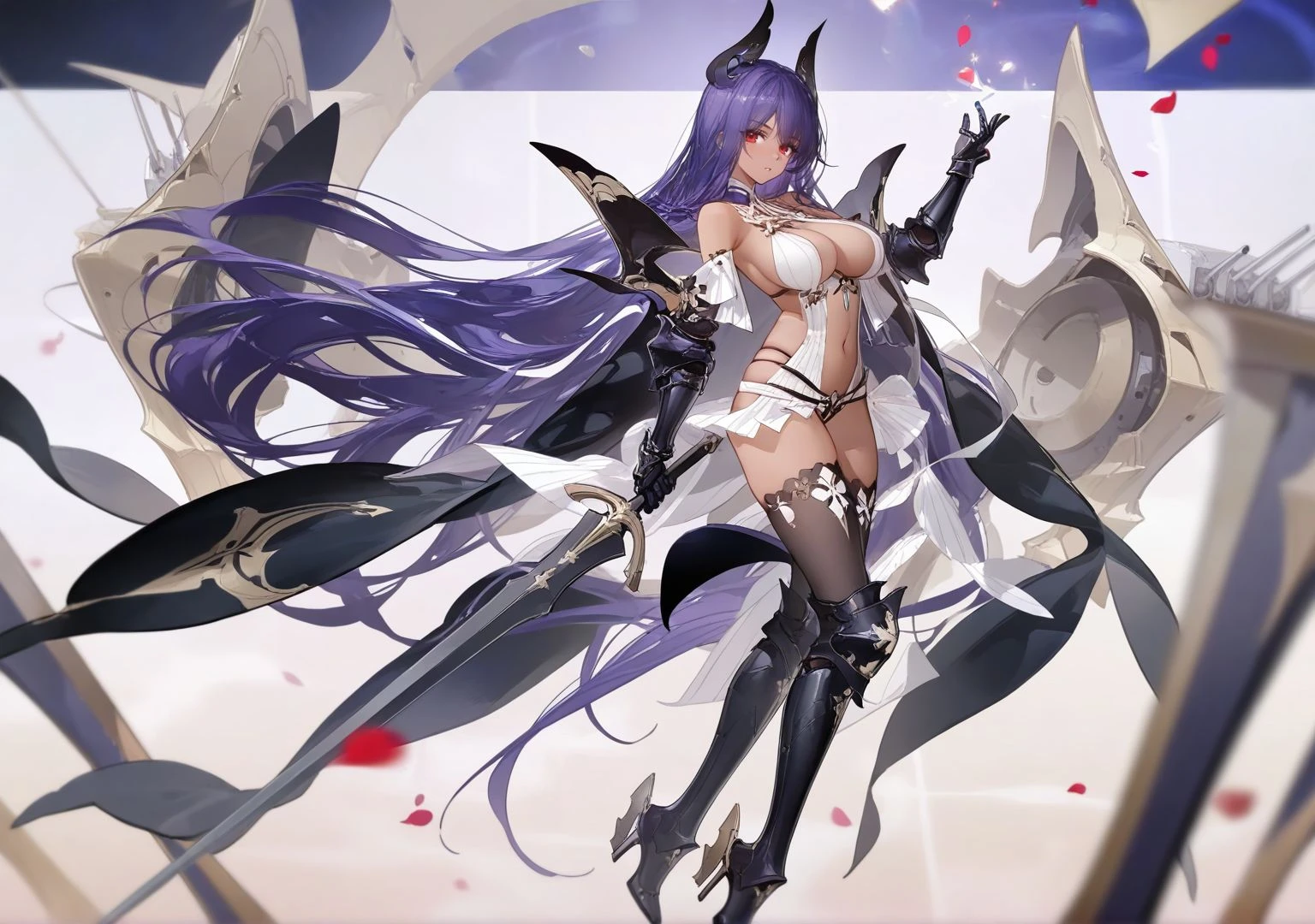 Belleau Default Skinbelleau (azur lane), white dress, white hair, horn, blue eyes,